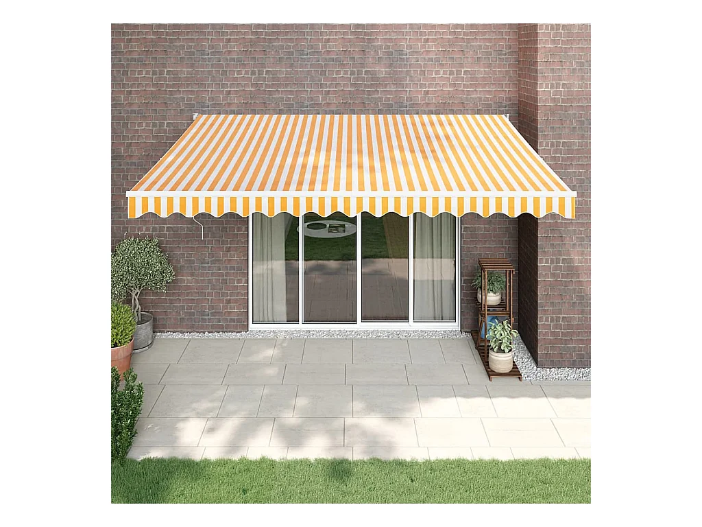 Toldo retráctil manual amarillo y blanco 450x350 cm