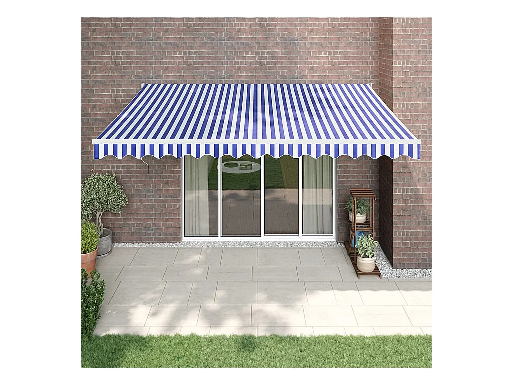 Toldo retráctil aluminio y tela azul y blanco 4,5x3 m ES65221