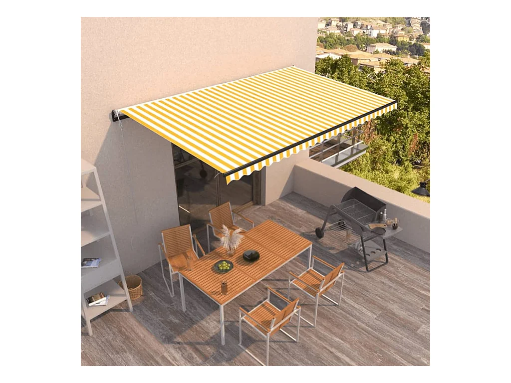 Toldo retráctil automático 500x350 Amarillo y blanco