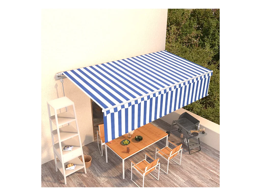 Toldo retráctil automático con persiana 6x3 Azul y blanco