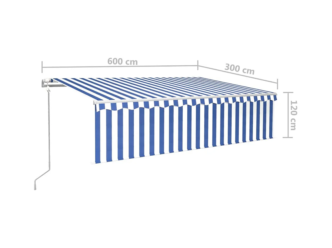 Toldo automático con sensor de viento LED 600x350 Azul y blanco