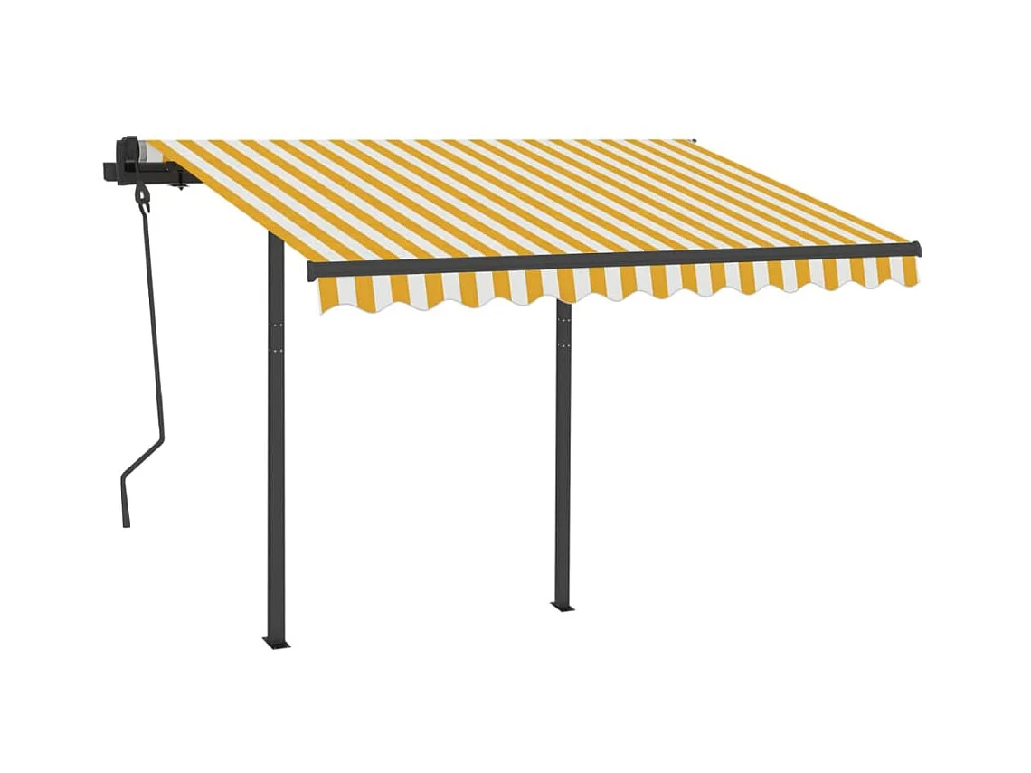 Toldo retráctil automático y postes 3x2,5m Amarillo y blanco