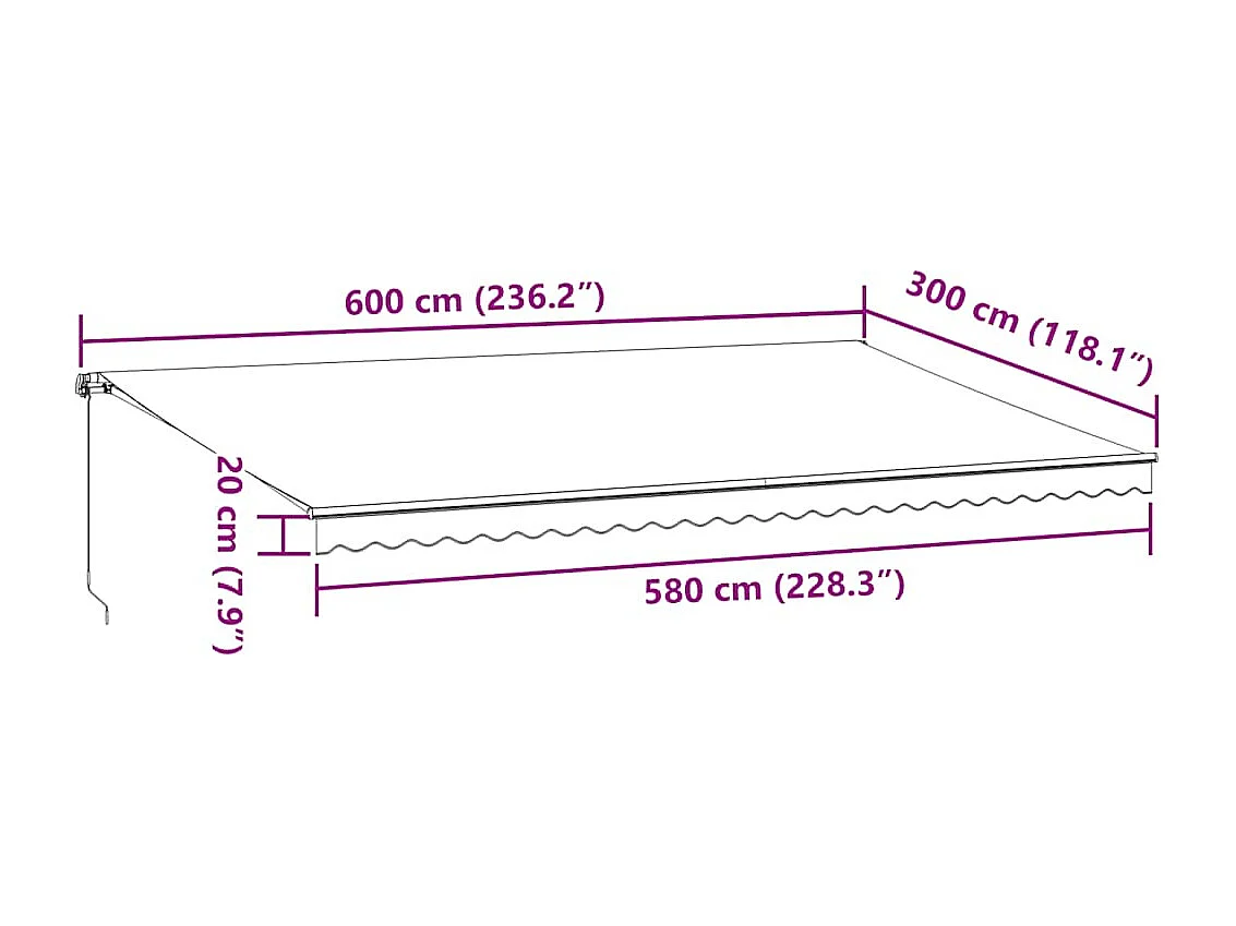 Toldo retráctil manual antracita y blanco 600x300 cm
