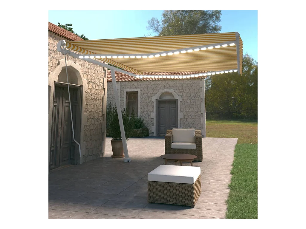Toldo retráctil manual con LED amarillo y blanco 500x350 cm