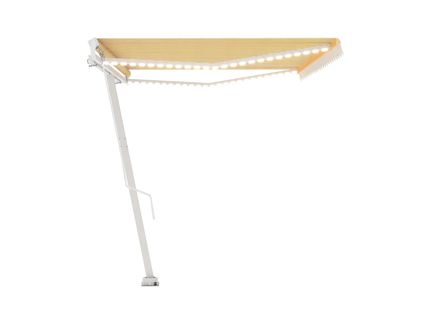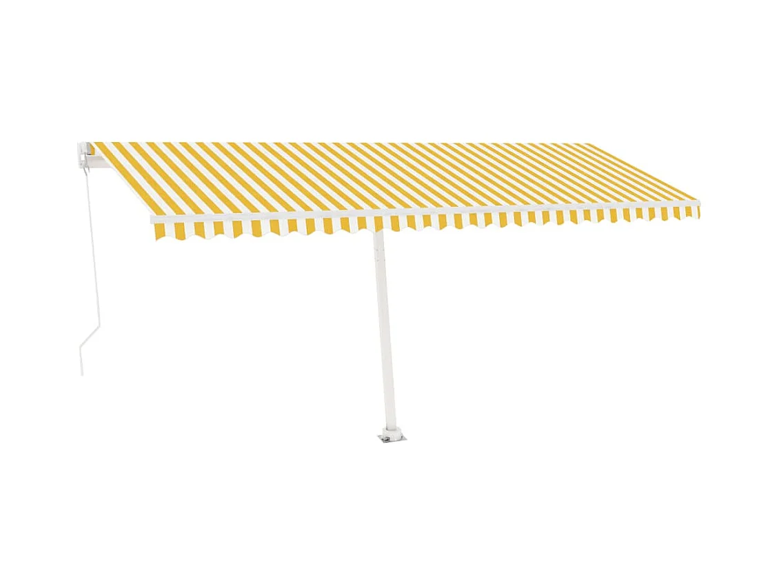 Toldo de pie retráctil manual amarillo y blanco 500x350 cm