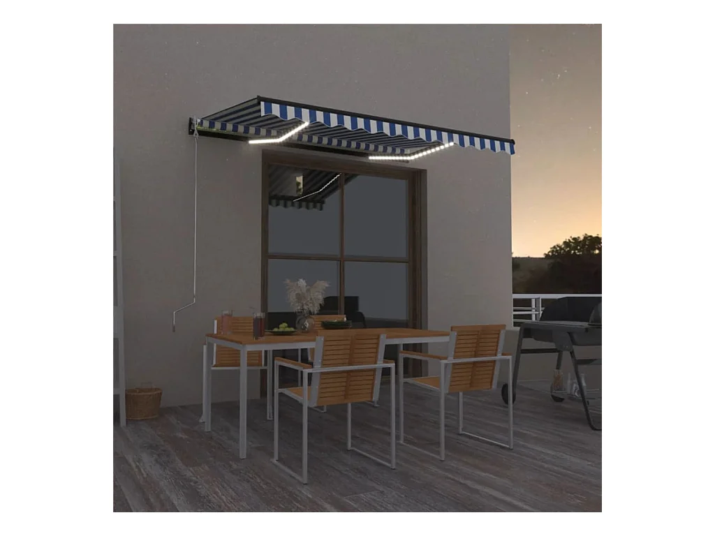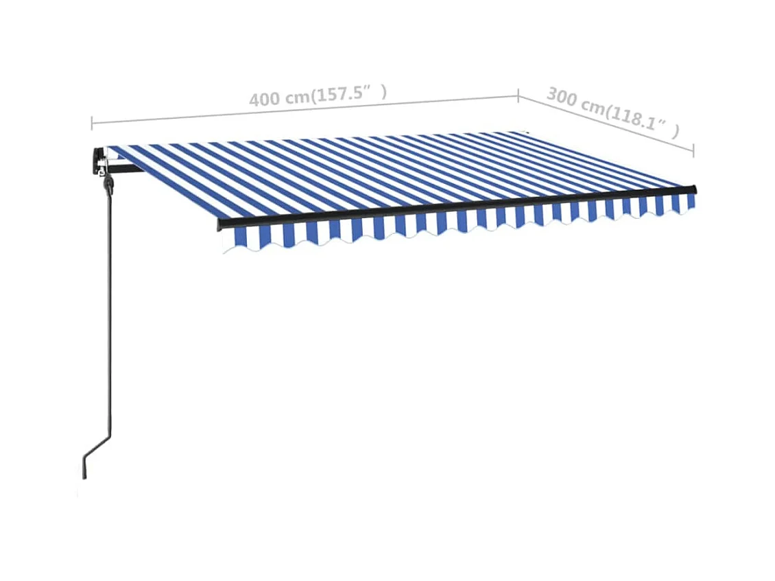 Toldo manual retráctil con LED azul y blanco 400x300 cm