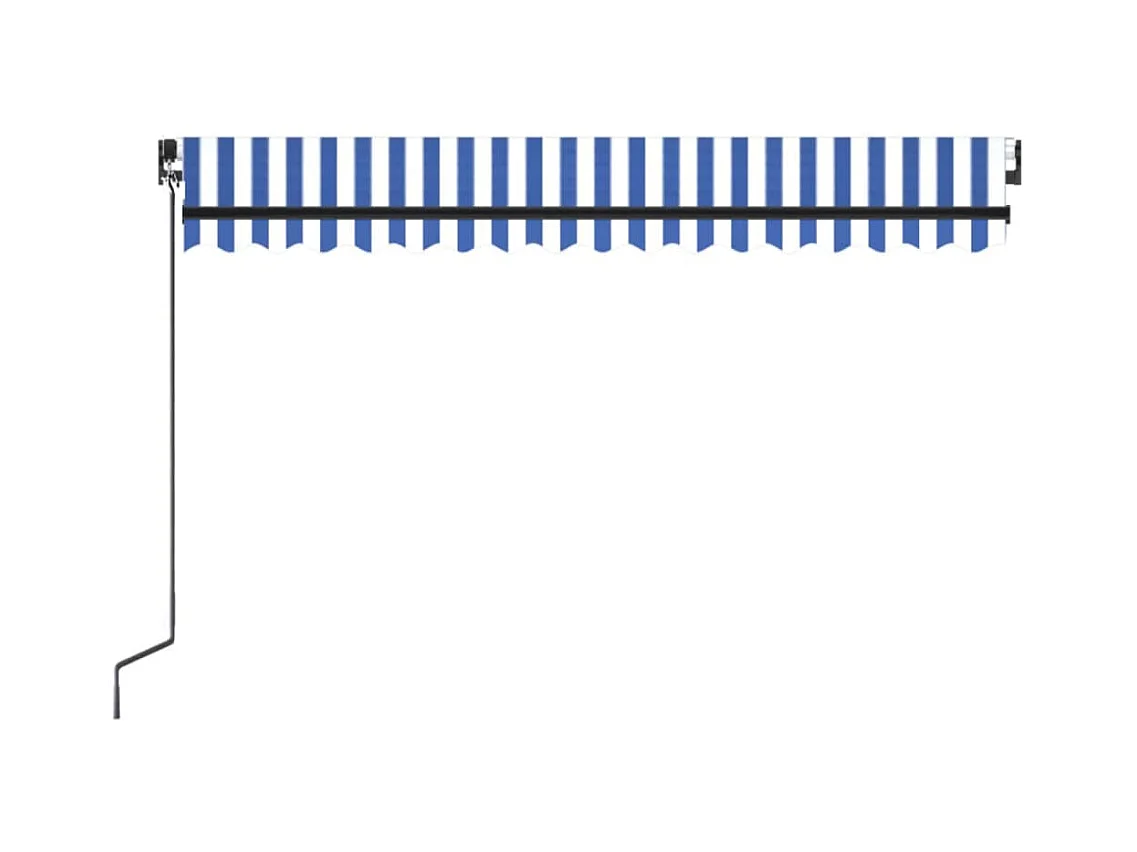 Toldo retráctil automático con postes azul y blanco 4x3 m