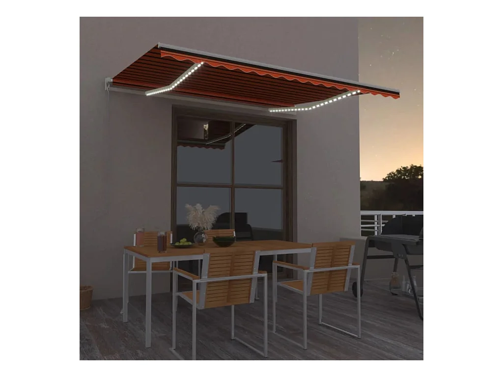 Toldo manual retráctil con LED naranja y marrón 400x300 cm