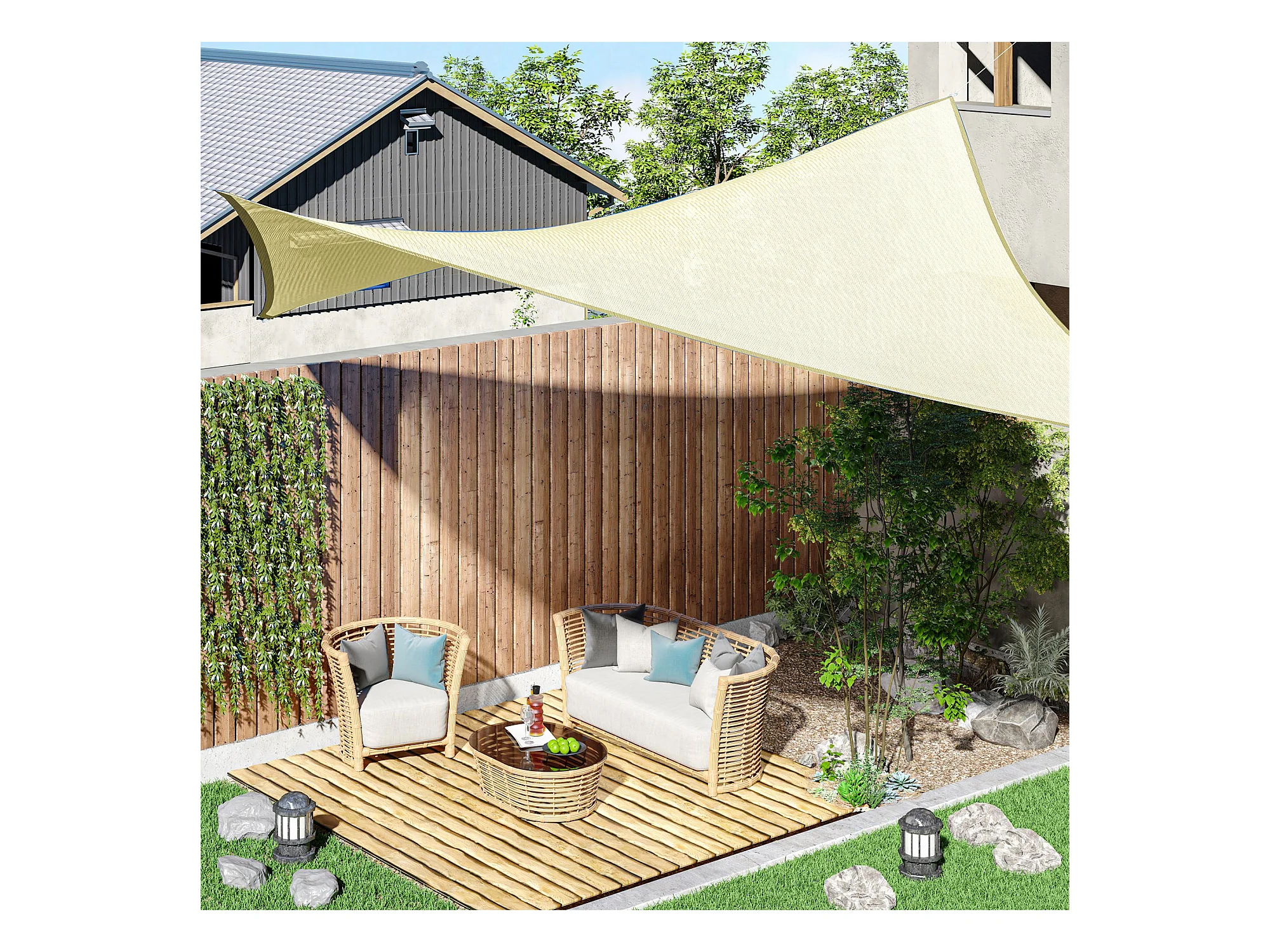 Toldo vela parasol triangular tejido Oxford 3 x 4 x 4 m crema 02_0009837