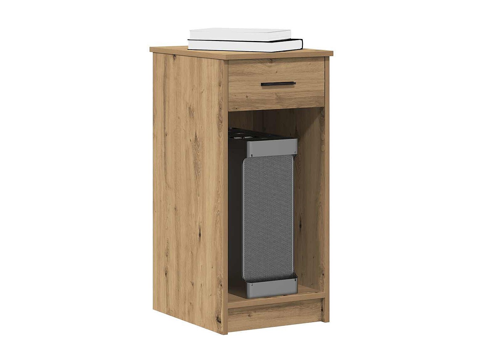 Torre de ordenador con cajón roble artesanal 35x45x77 cm