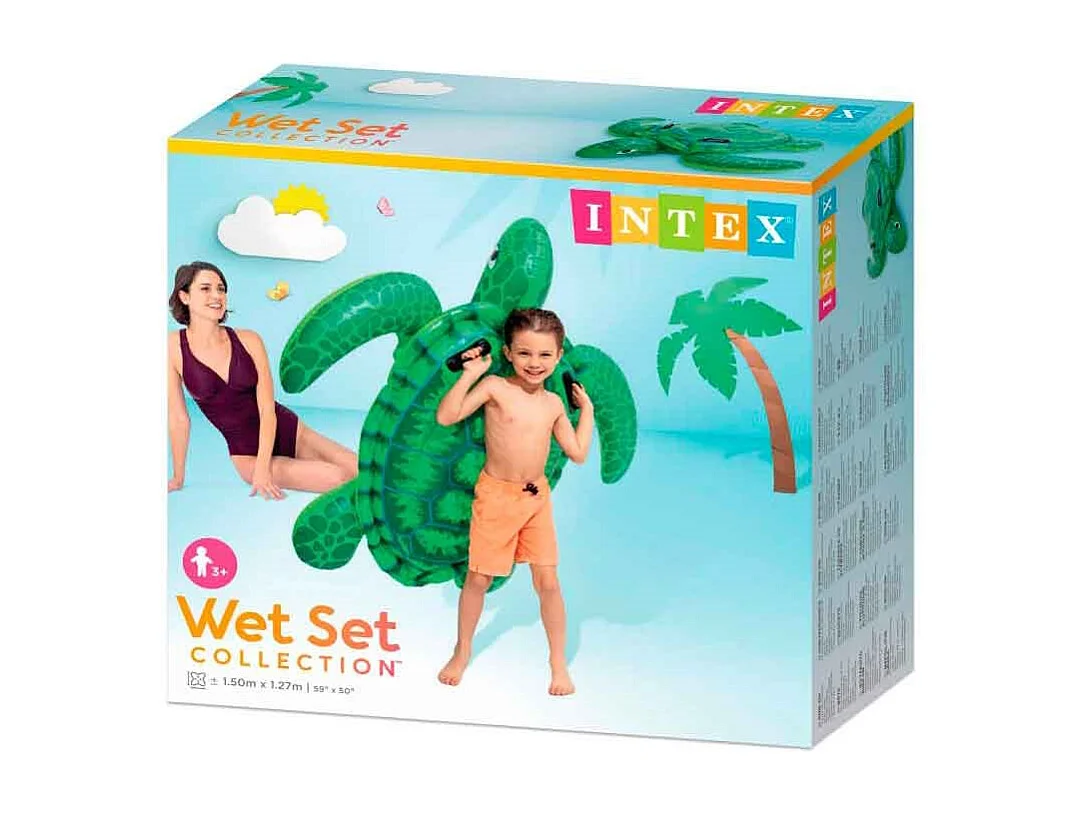 Tortuga hinchable Intex con asas laterales +3A verde 150x127 cm