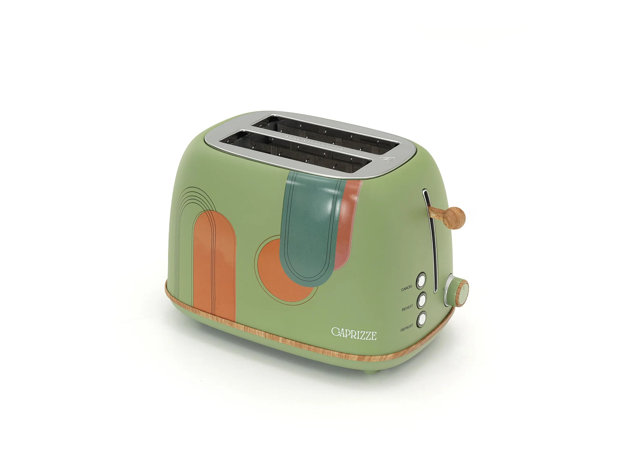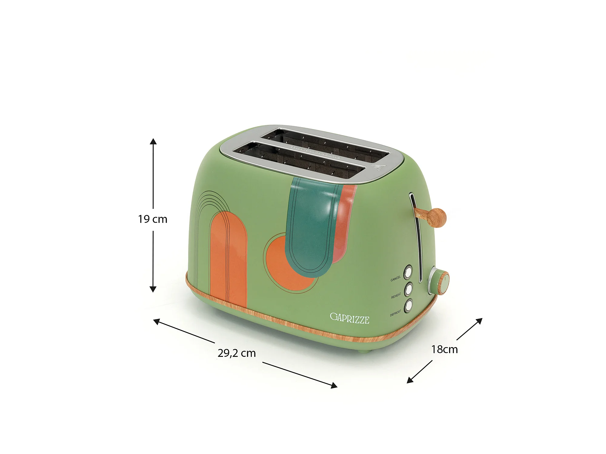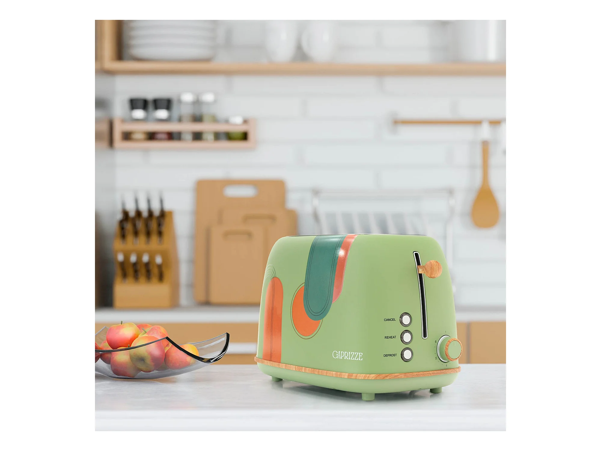 Tostadora de Pan Caprizze Kaito con Doble Ranura Extra Ancha 6 Niveles de Tostado Decoración Floral y Efecto Madera Verde Mate