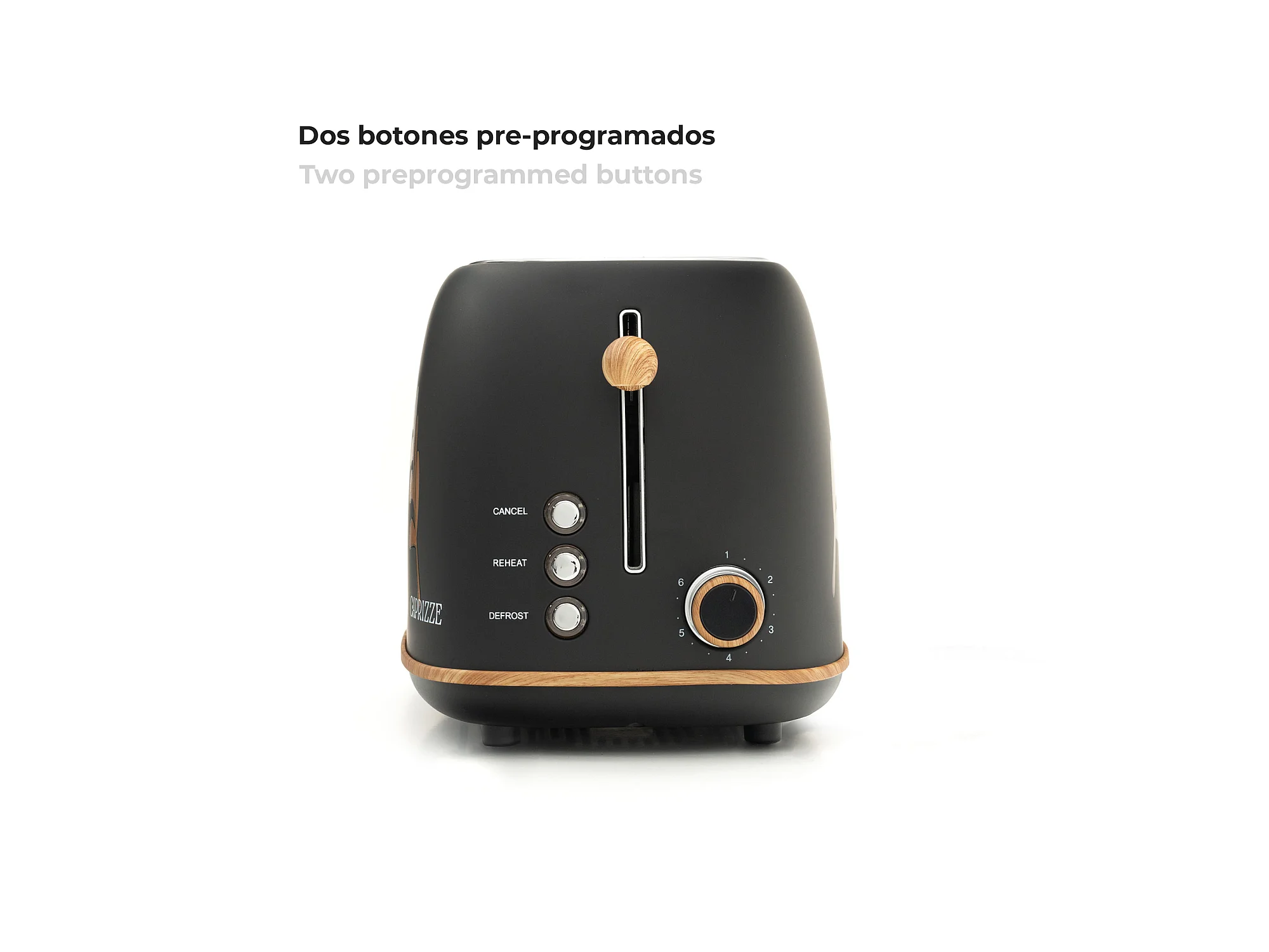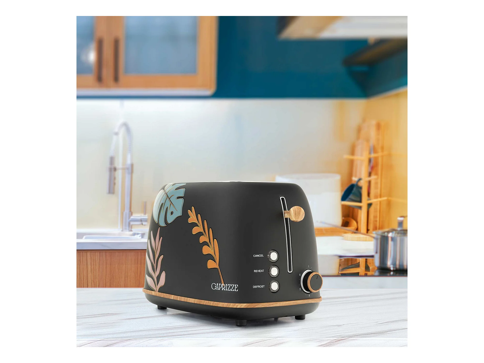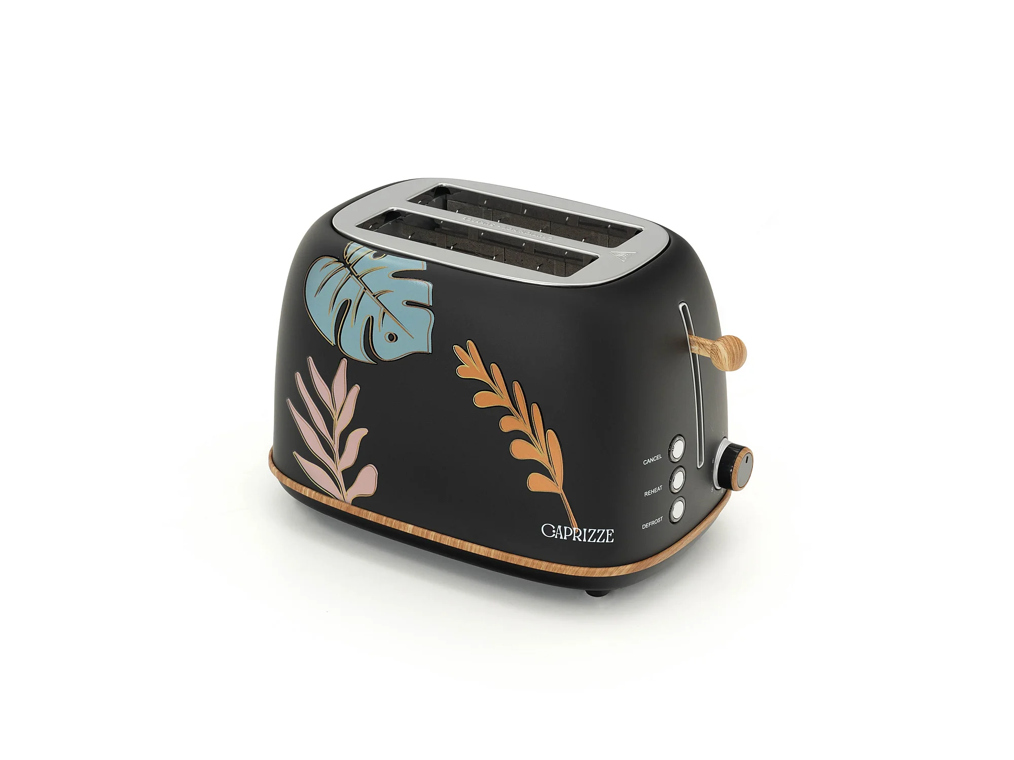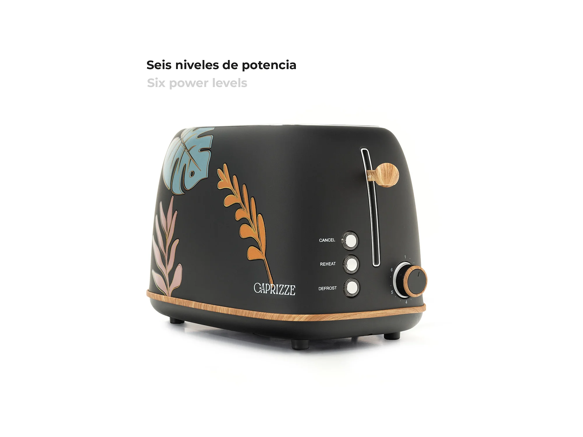 Tostadora de Pan Caprizze Kaito con Doble Ranura Extra Ancha 6 Niveles de Tostado Decoración Floral y Efecto Madera Negra Mate