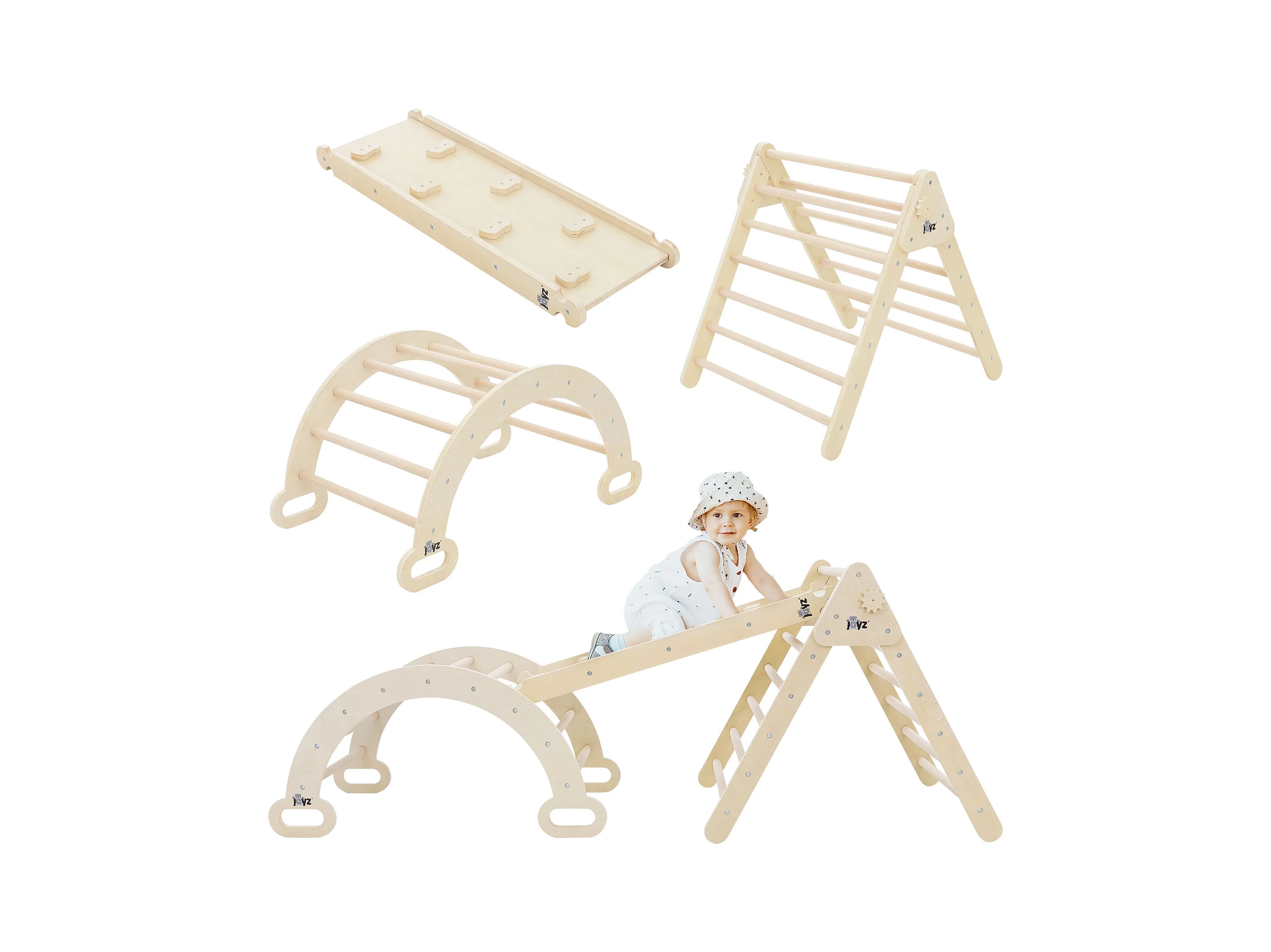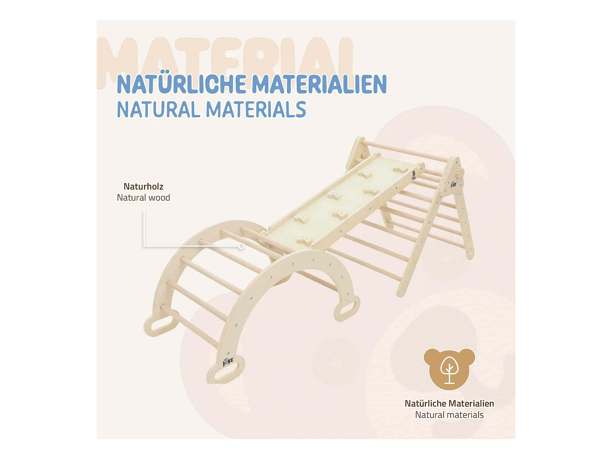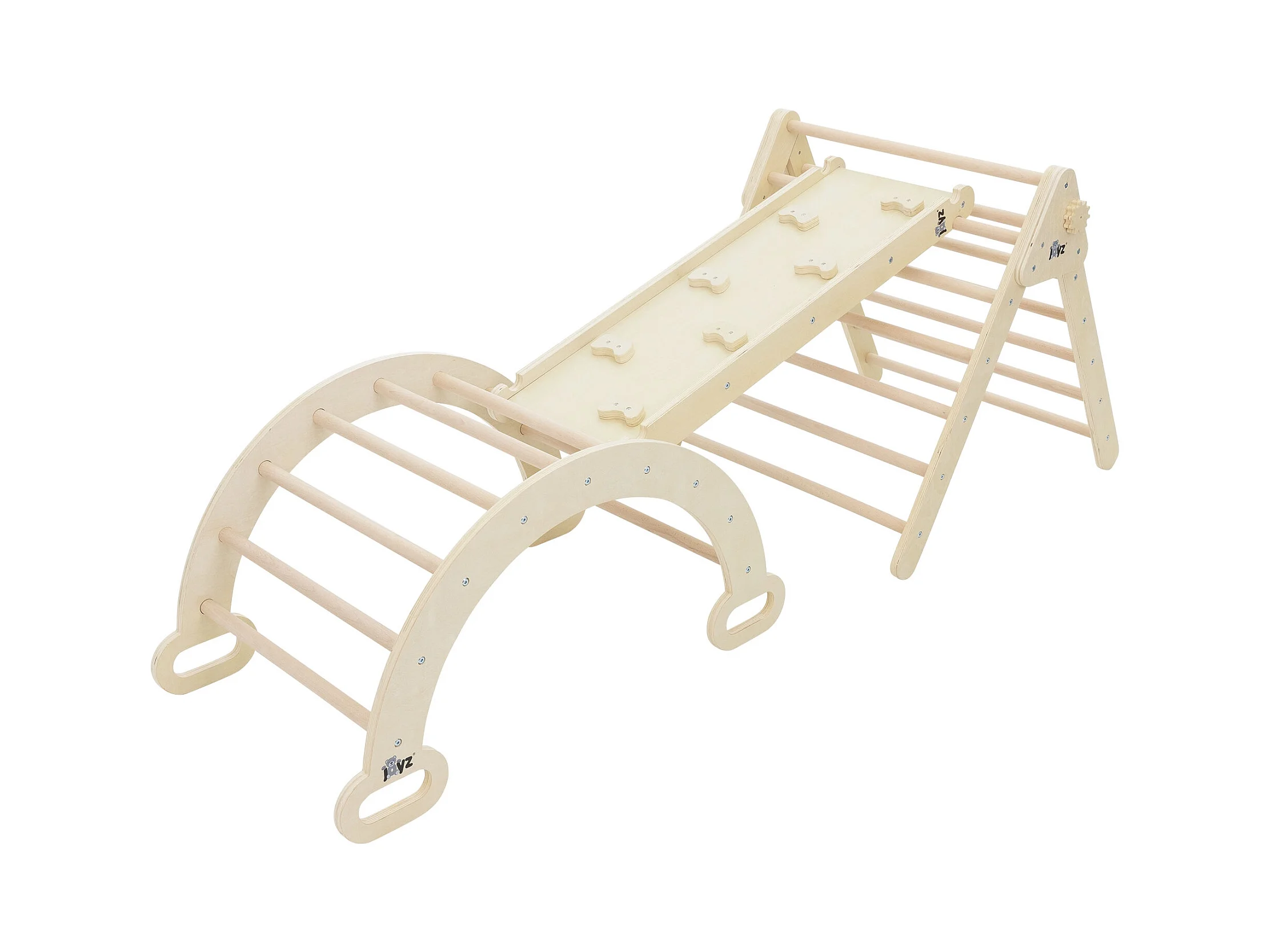 Triángulo de escalada + tobogán + arco de escalada en madera natural Juguete Montessori