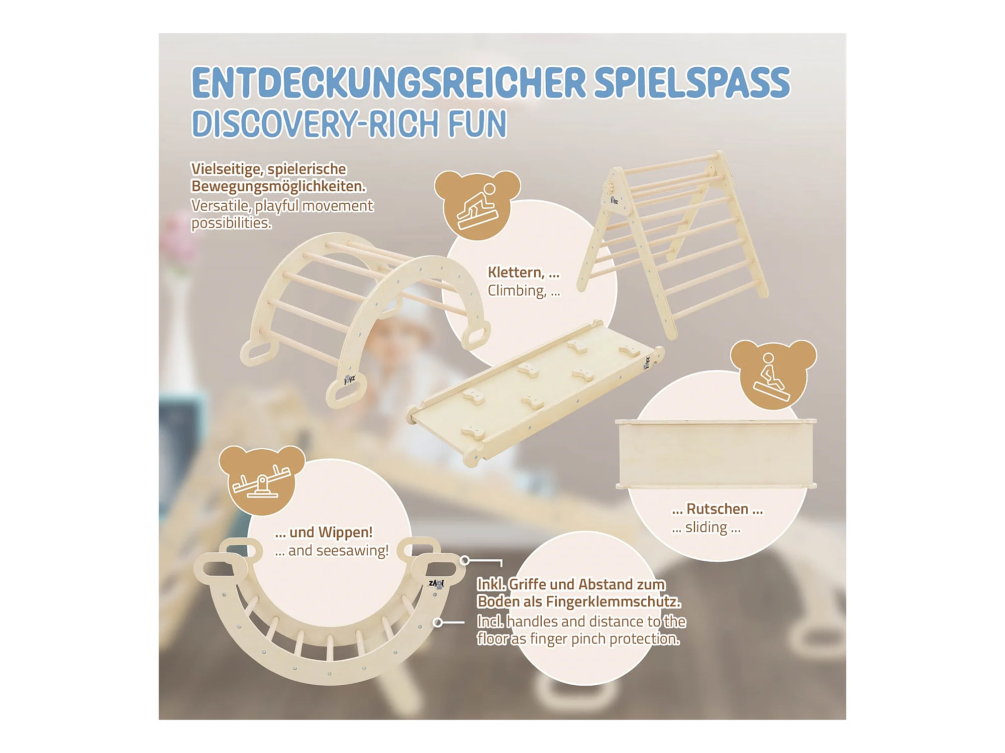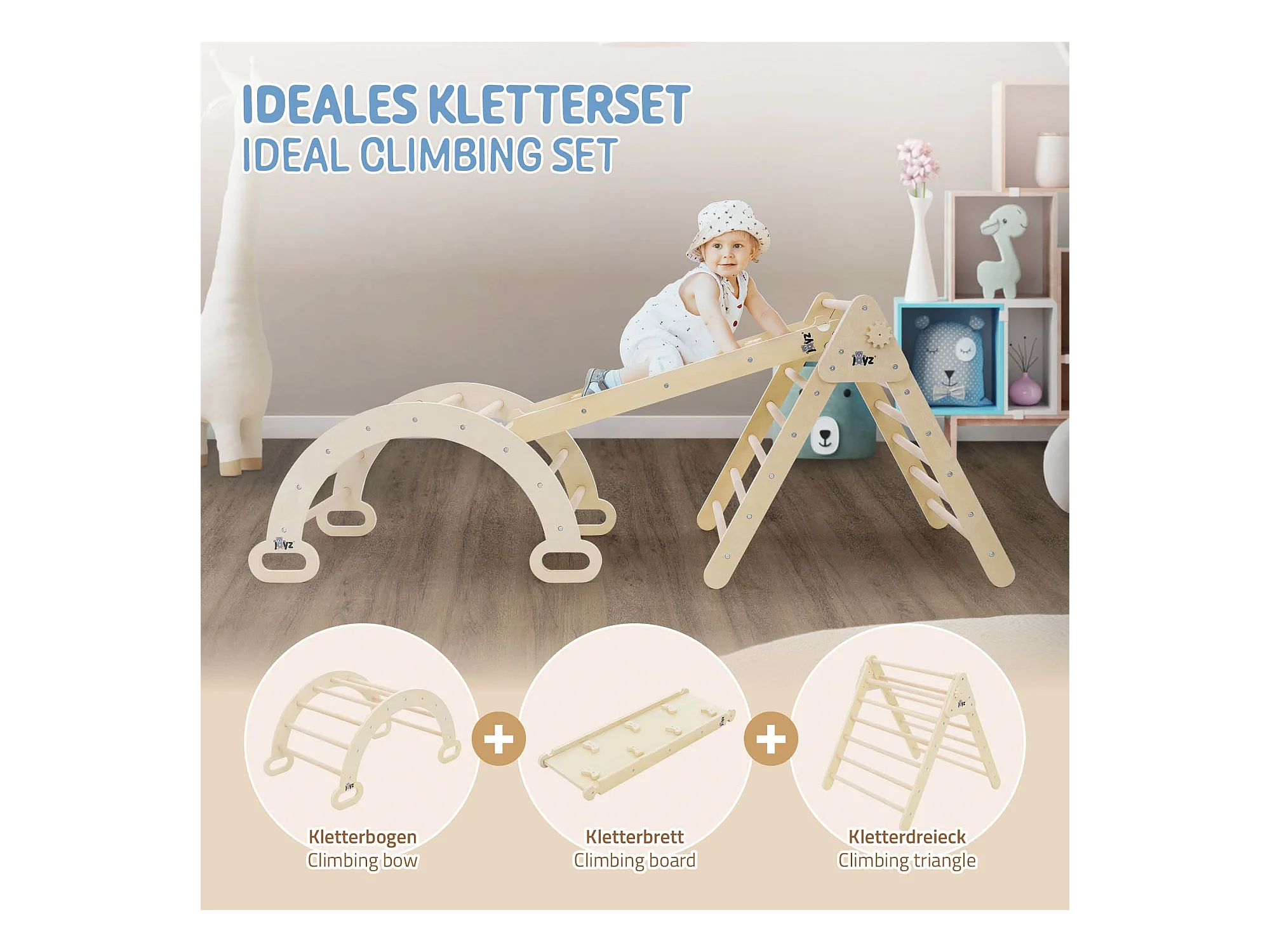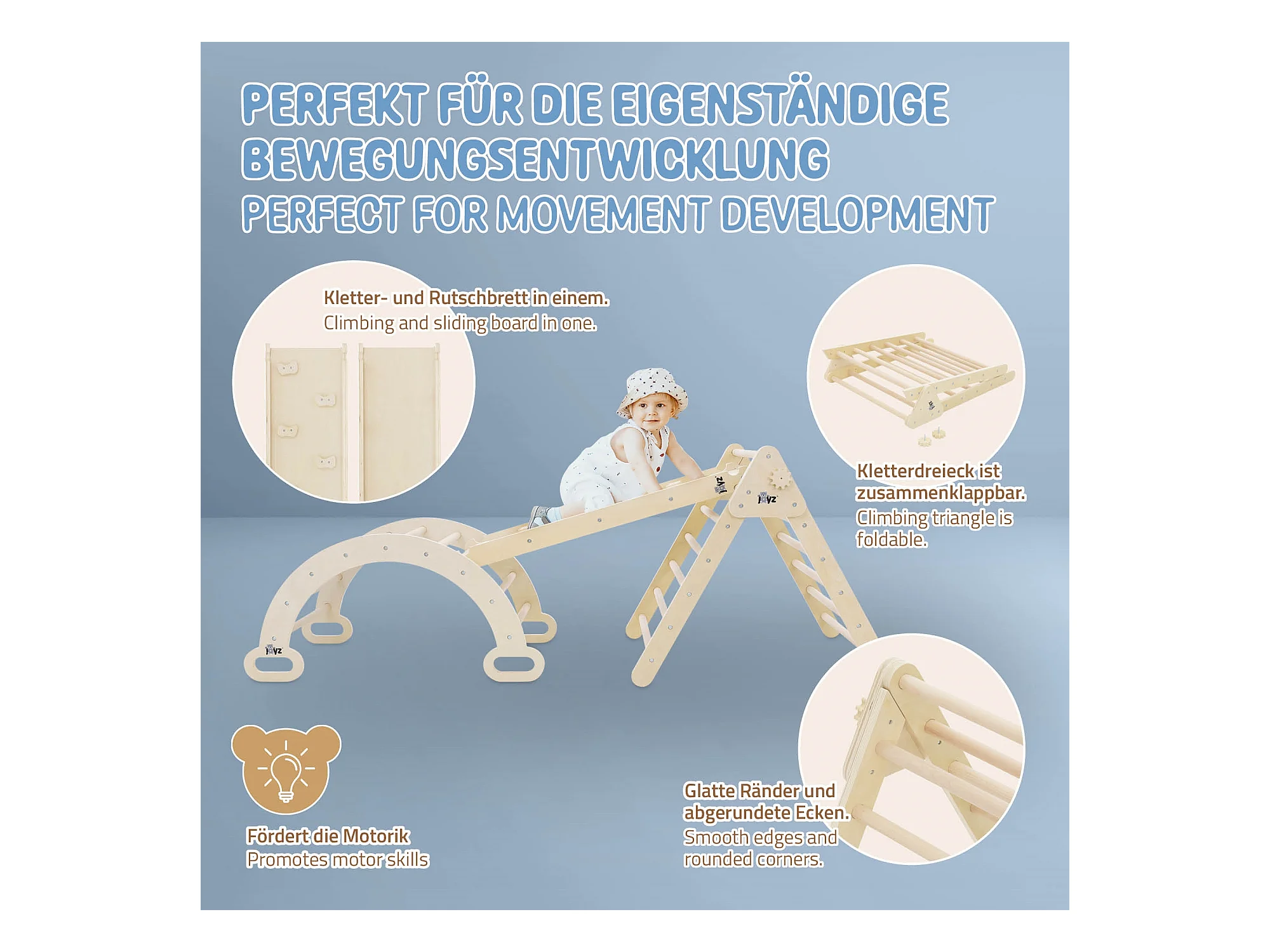 Triángulo de escalada + tobogán + arco de escalada en madera natural Juguete Montessori