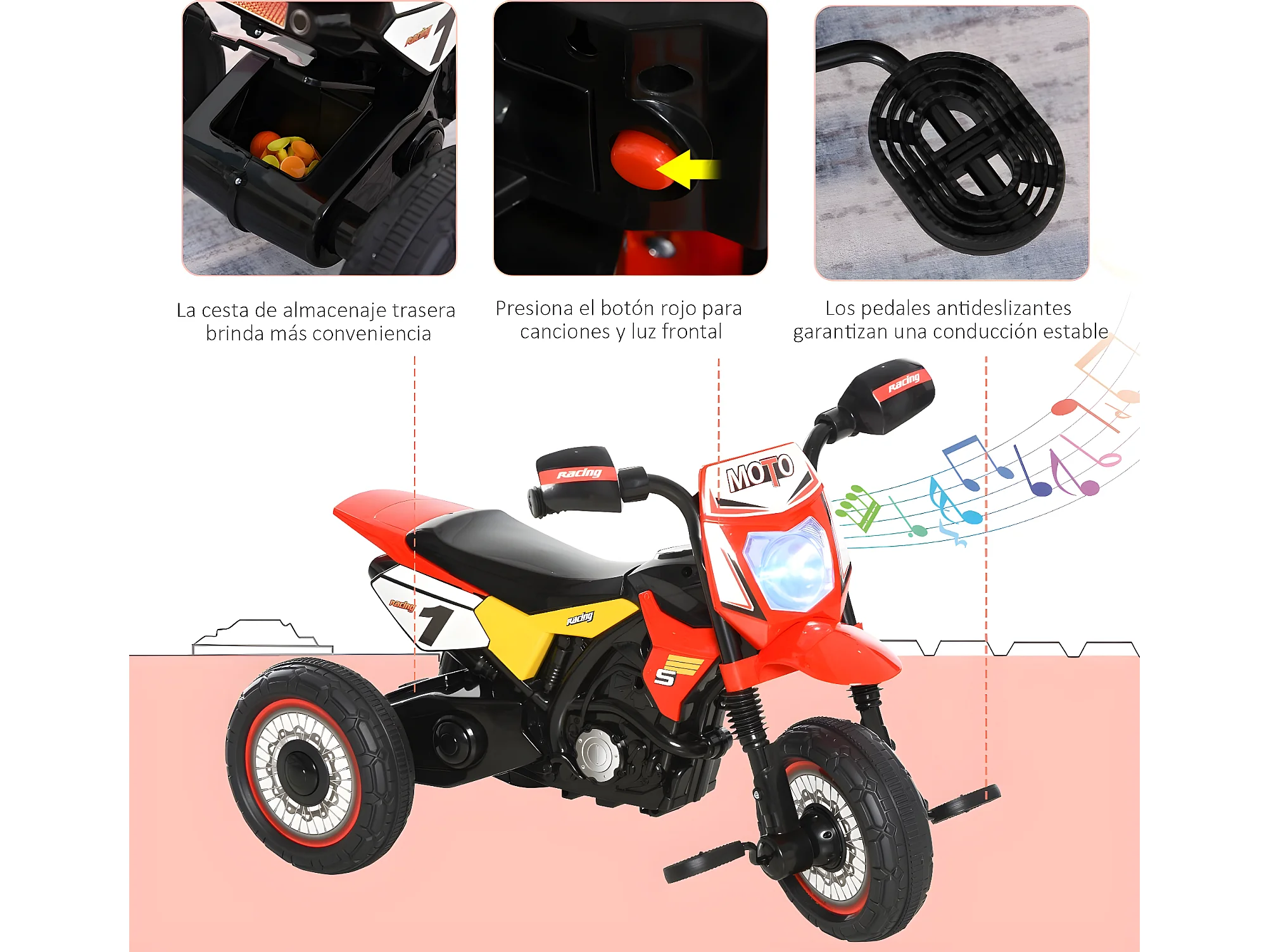 Moto eléctrica infantil rojo 102x50,5x75,5cm HOMCOM