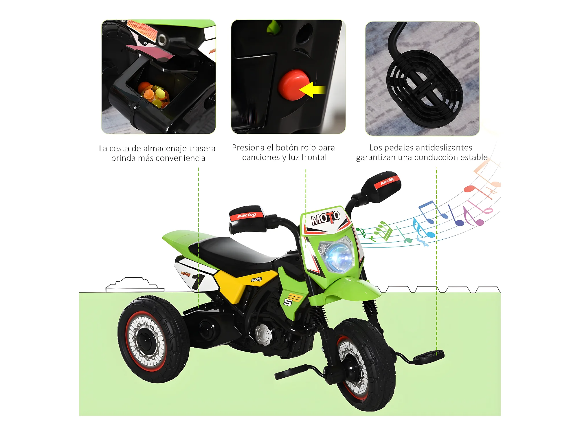 Moto eléctrica para niños verde 66.5x38x52 cm HOMCOM