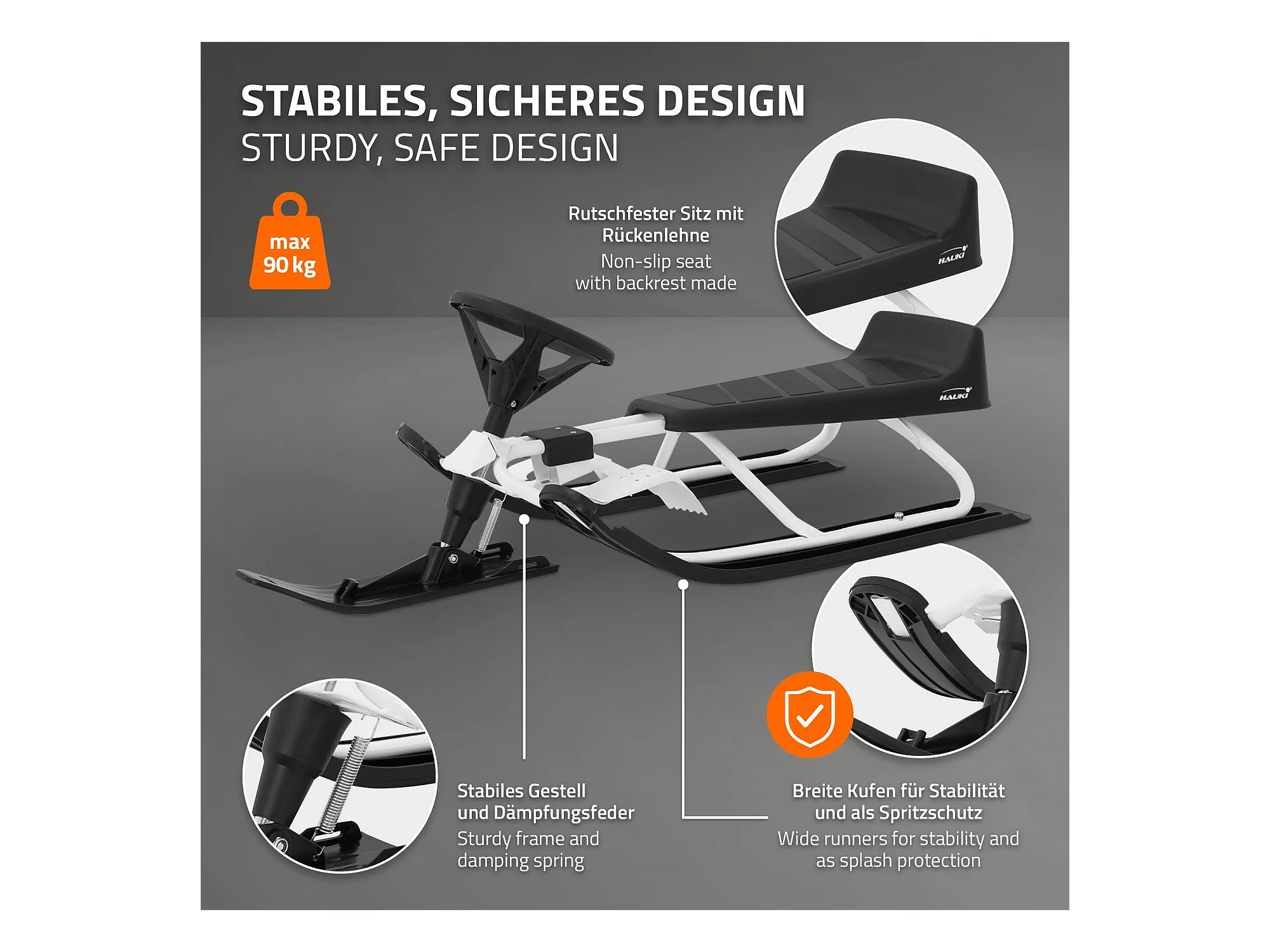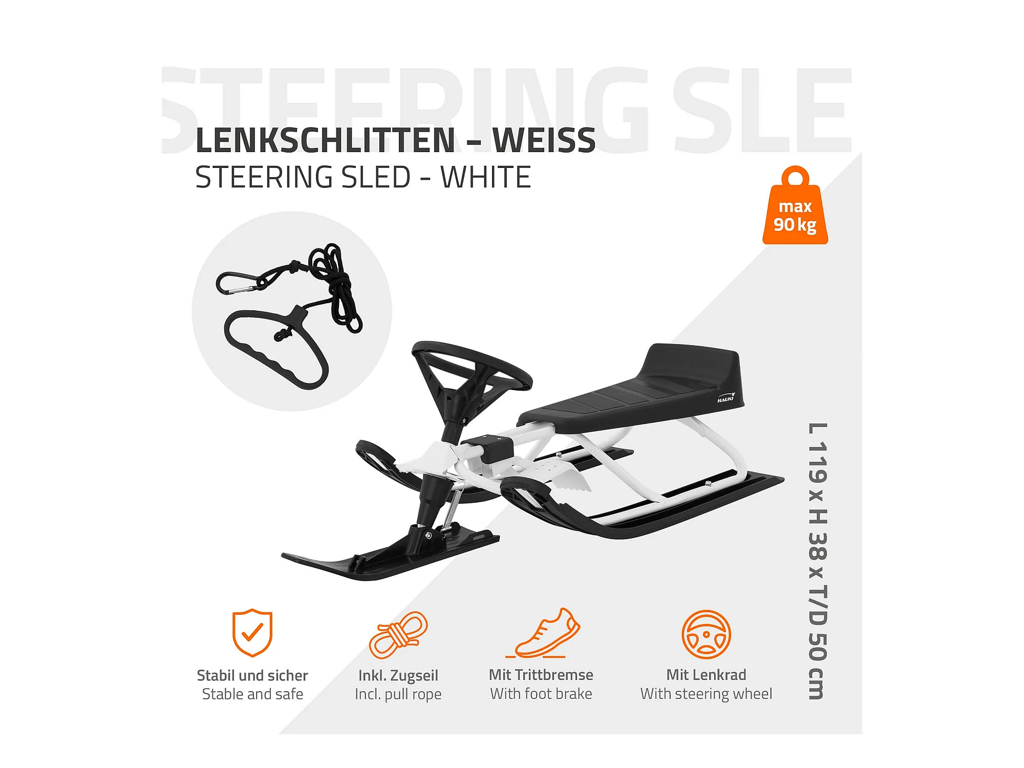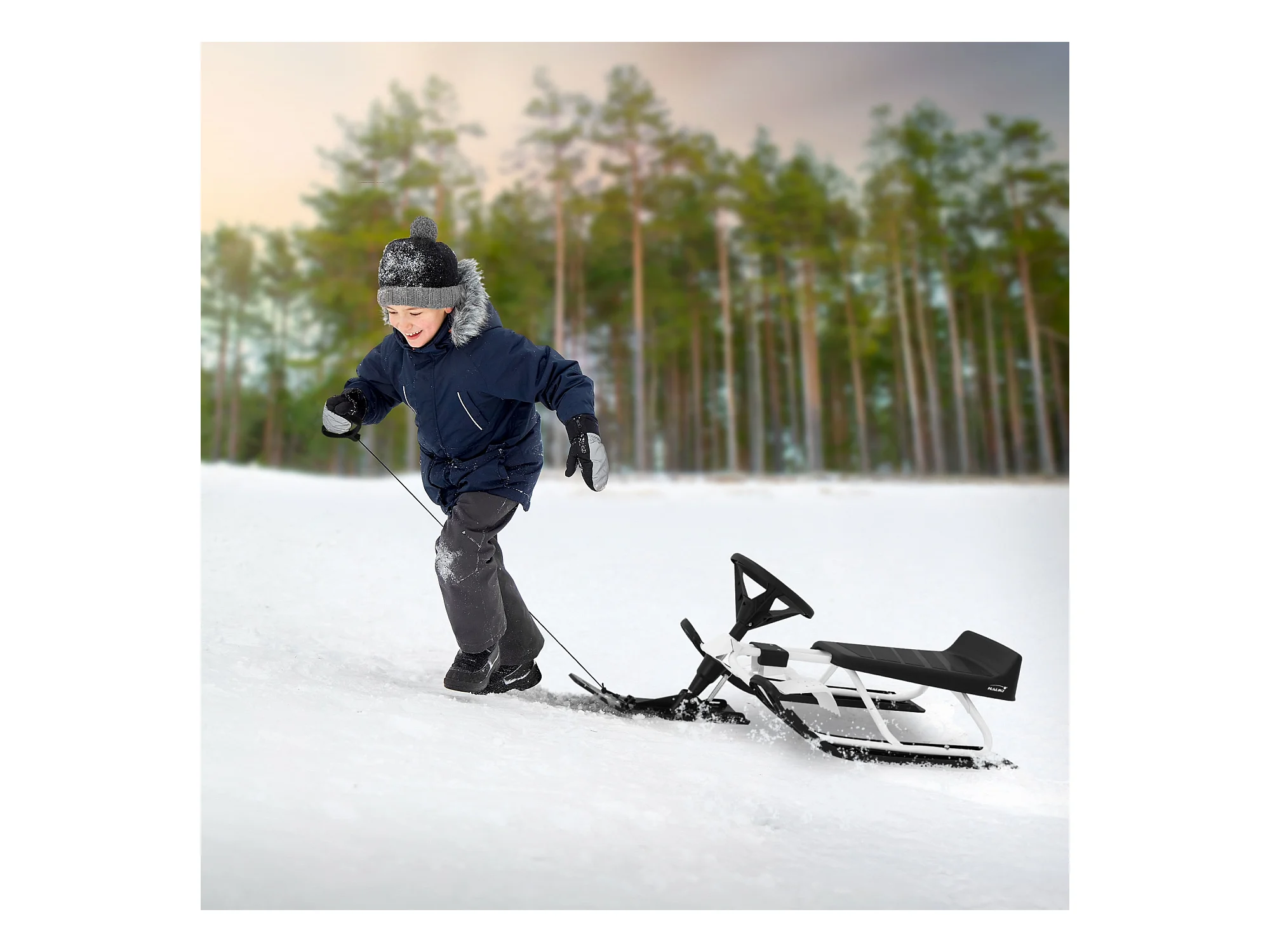 Trineo de nieve carro con volante y freno de pie deslizador infantil hasta 90kg