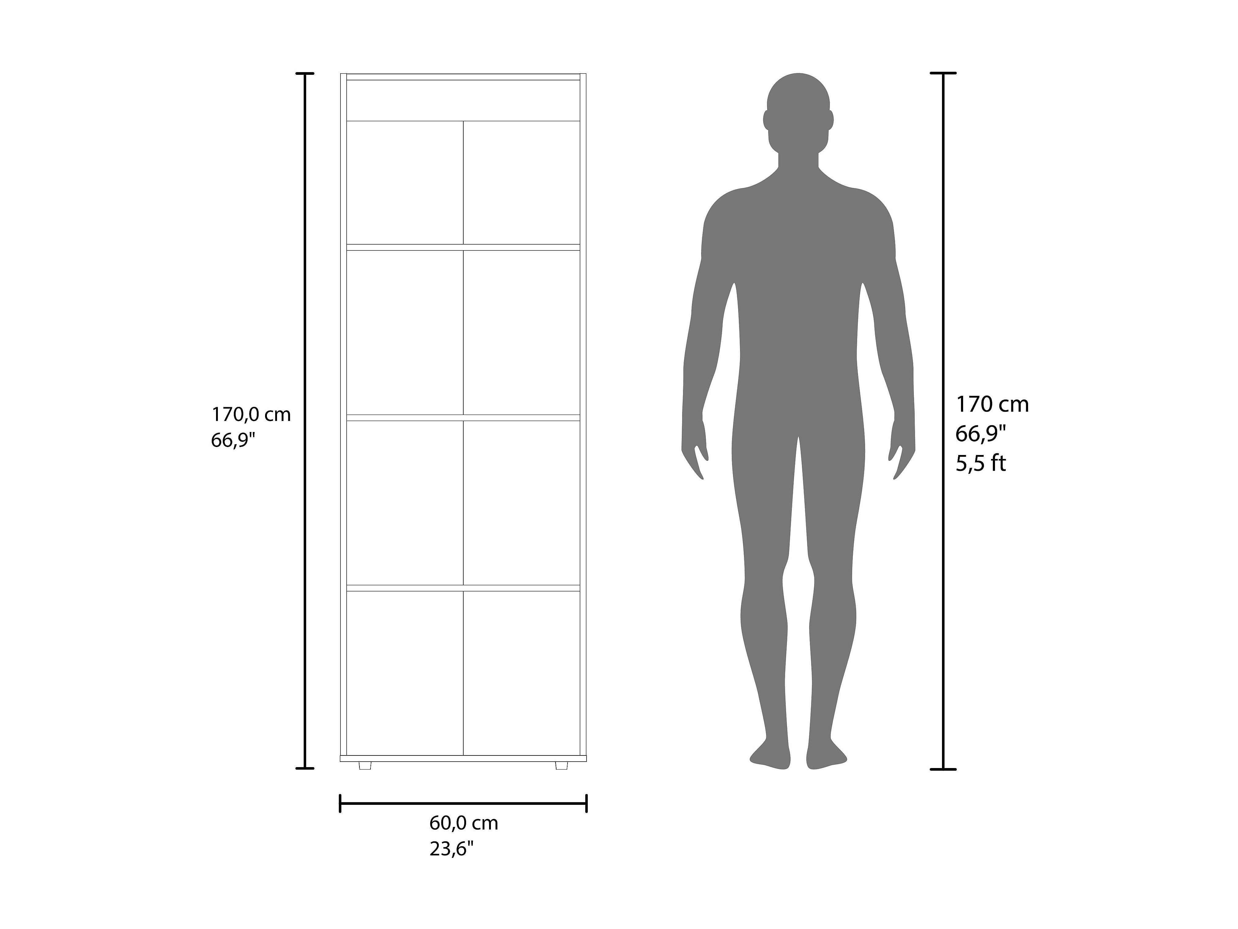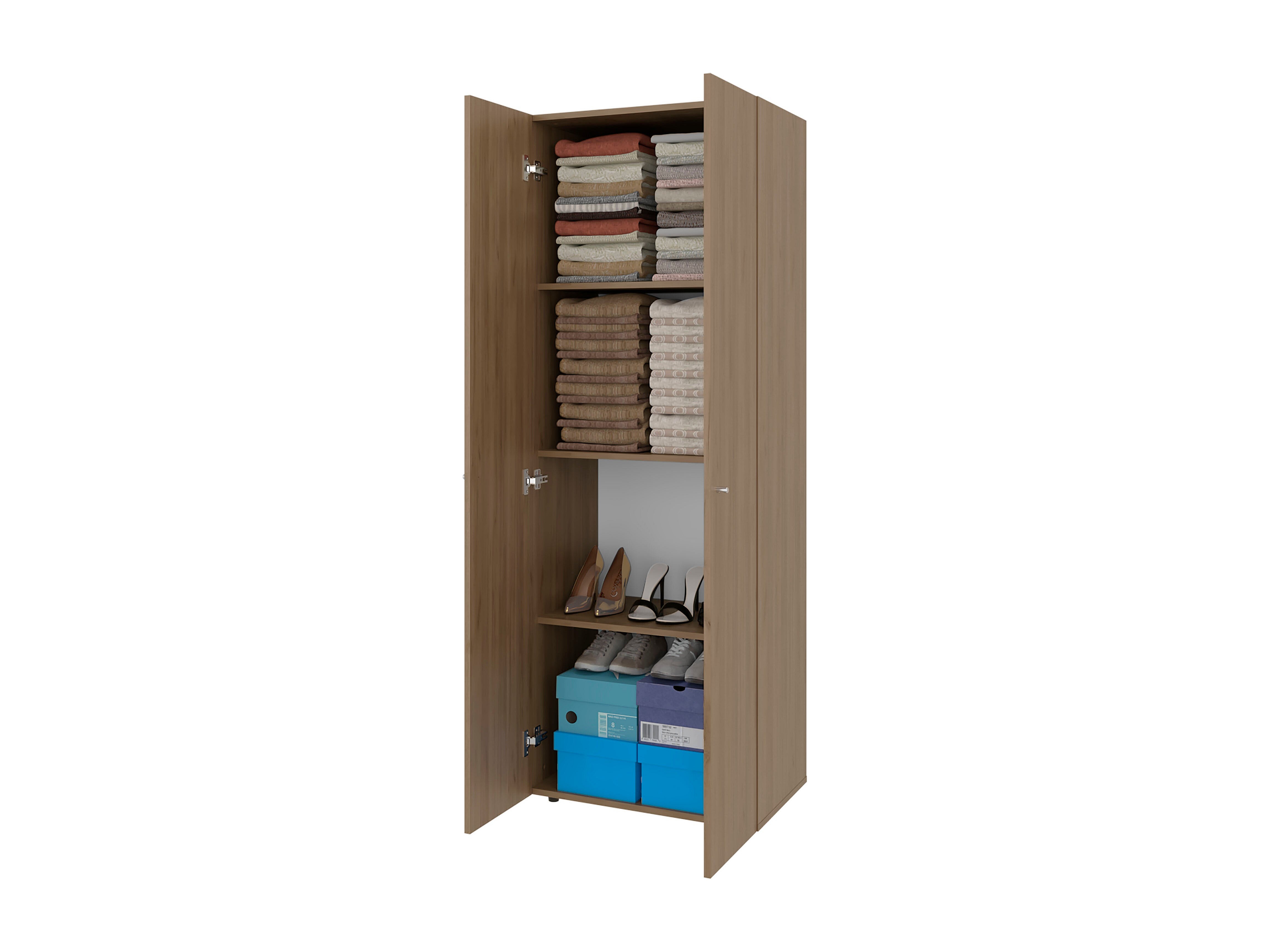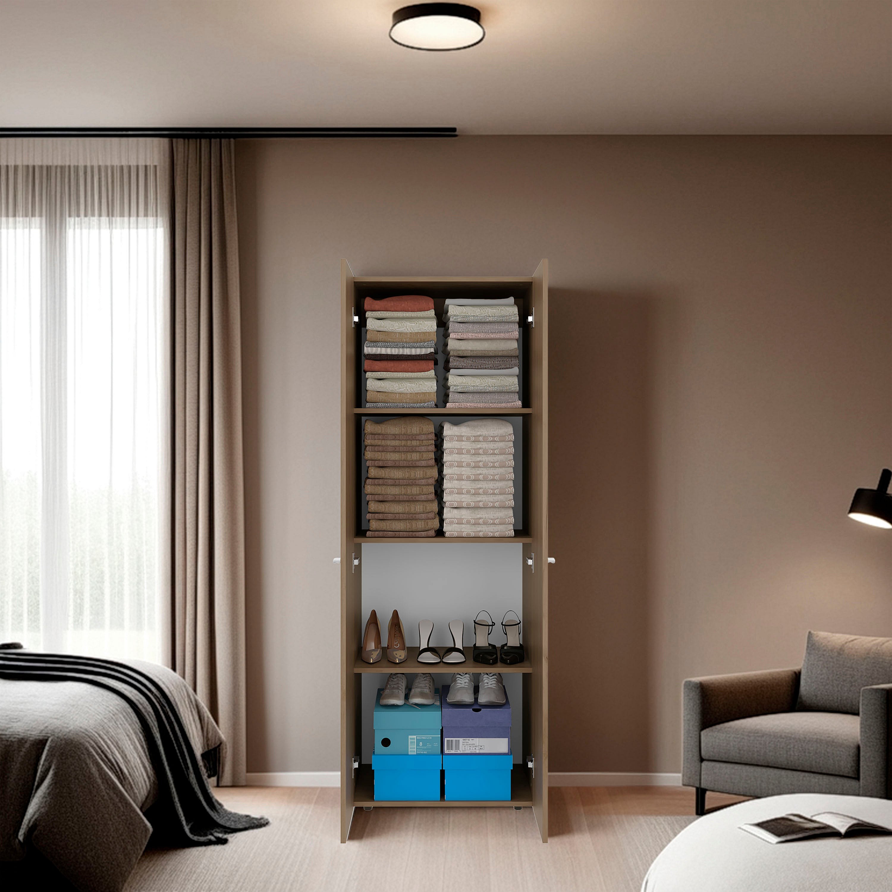 TUHOME Armario alto de 2 puertas World, 4 estantes, almacenamiento vertical, dormitorio, roble natural