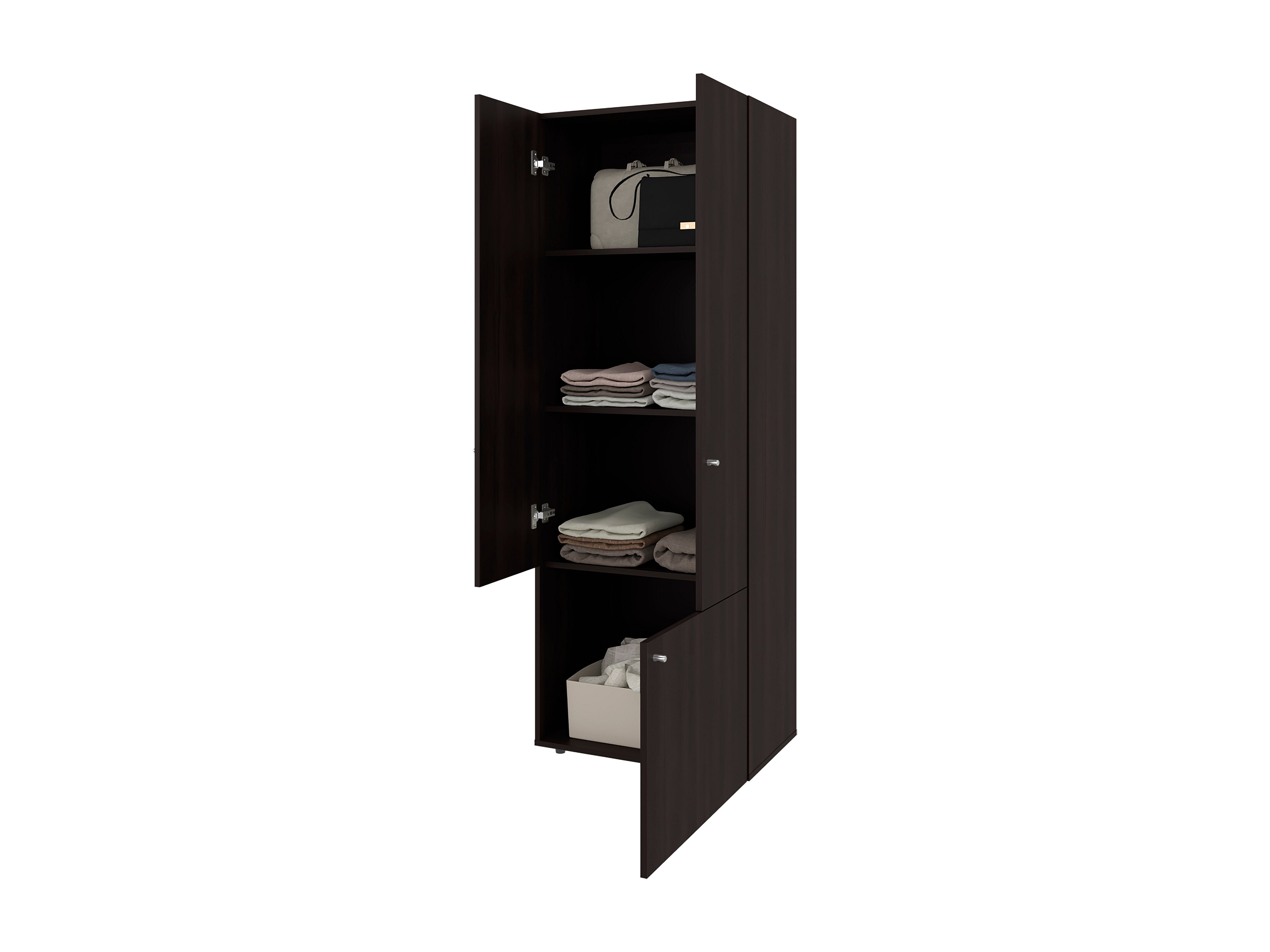 TUHOME Armario alto de 3 puertas con 4 estantes Tolleson, armario independiente para dormitorio o recibidor, nogal teñido