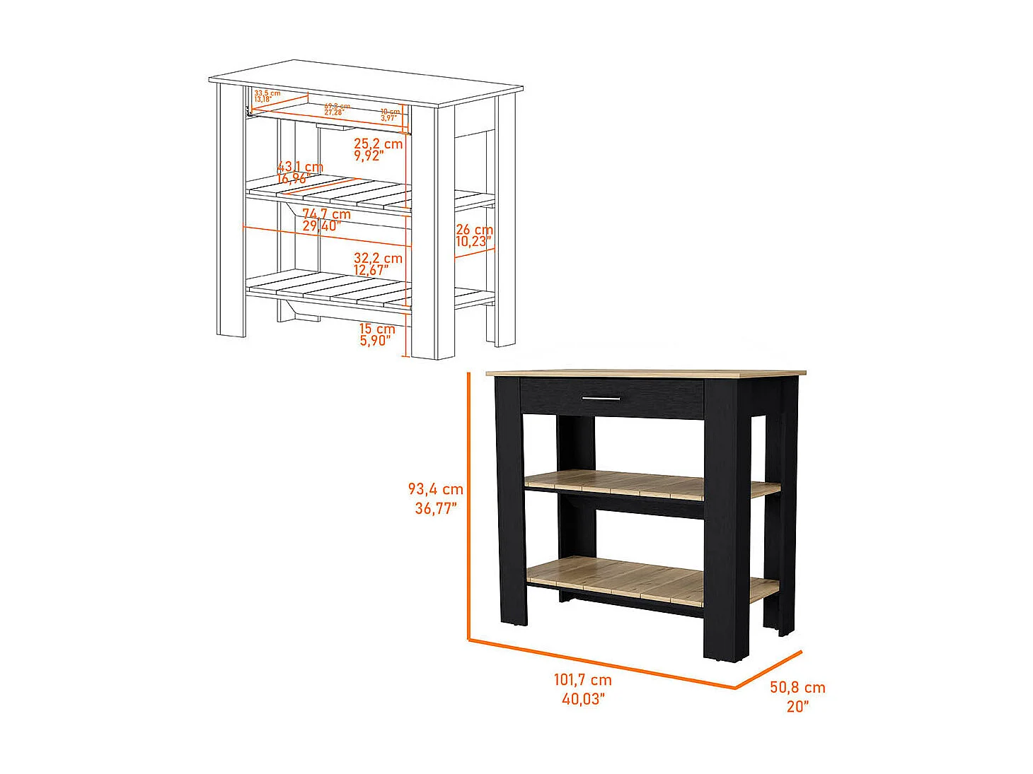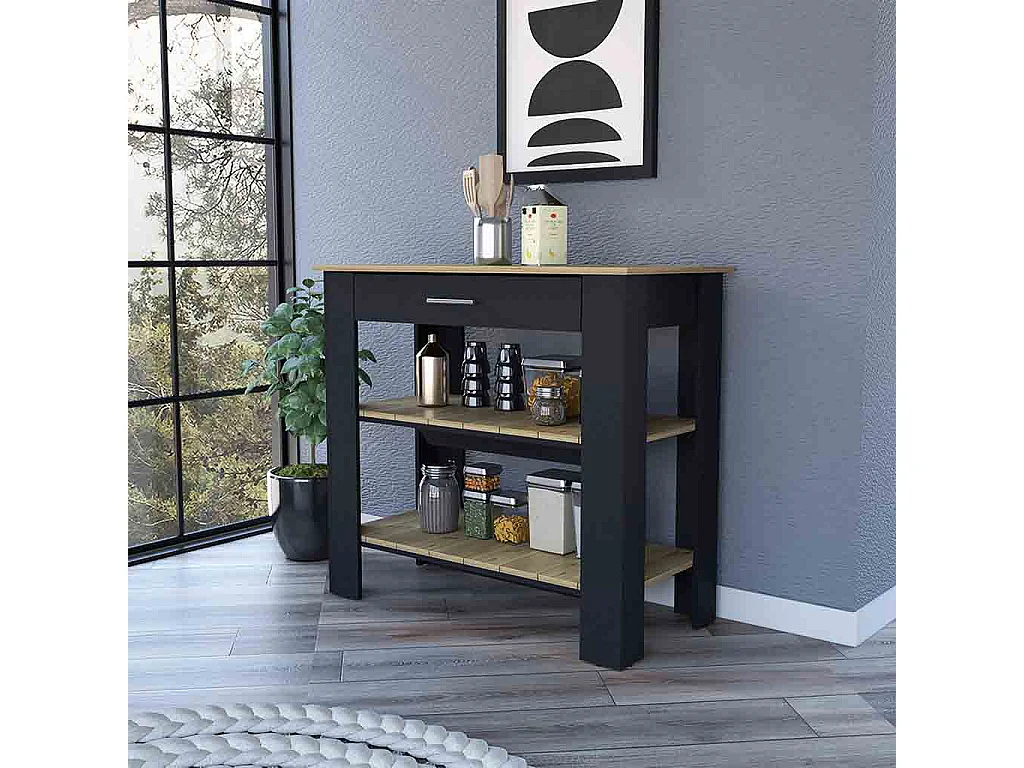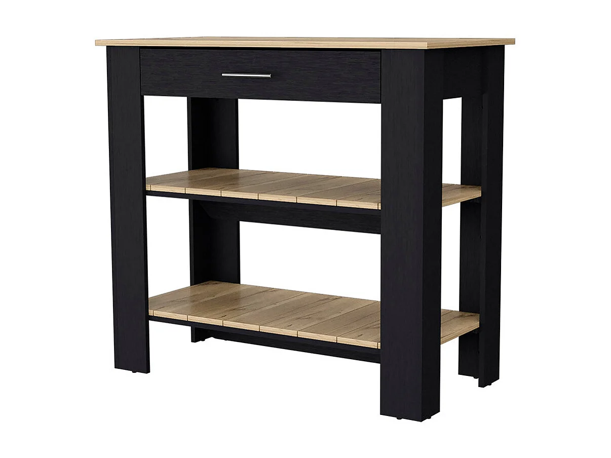 TUHOME Isla de Cocina Brooklyn, Dos Estantes, Un Cajón, Negro / Roble Claro
