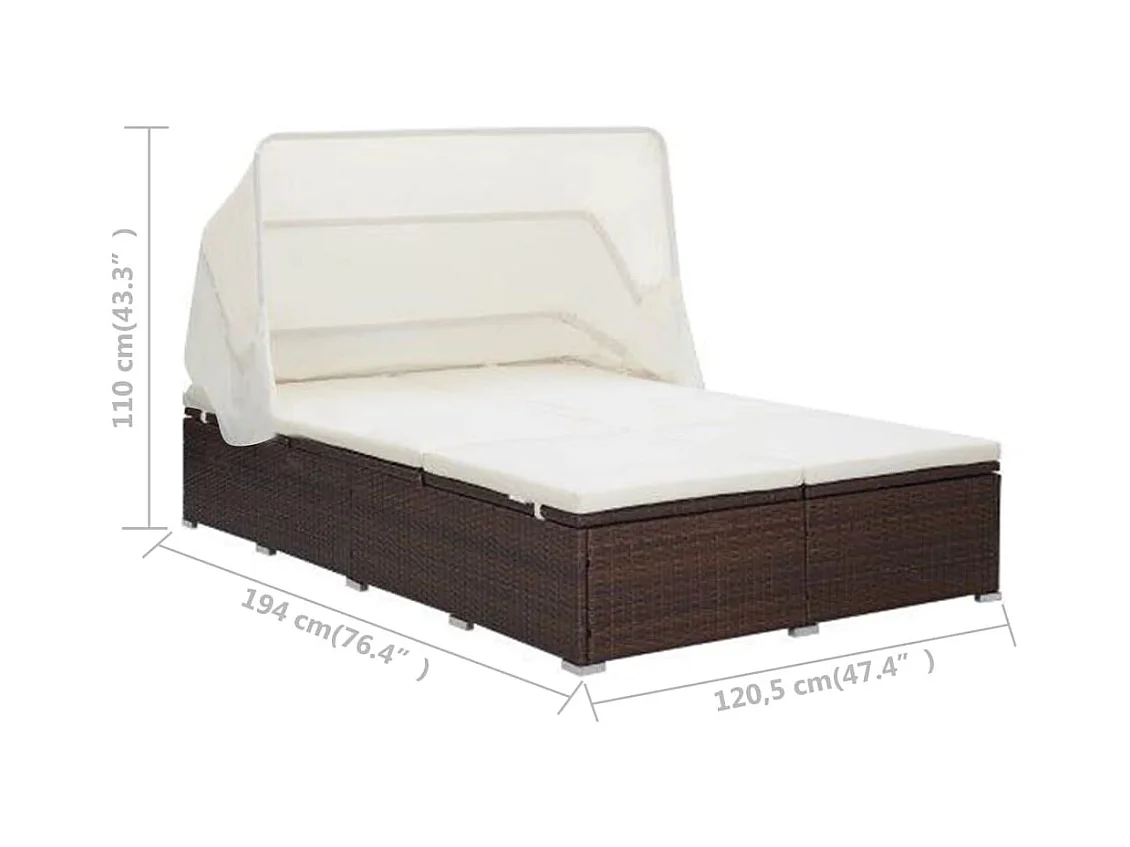 Tumbona 2 plazas con cojín Mimbre resina Marrón