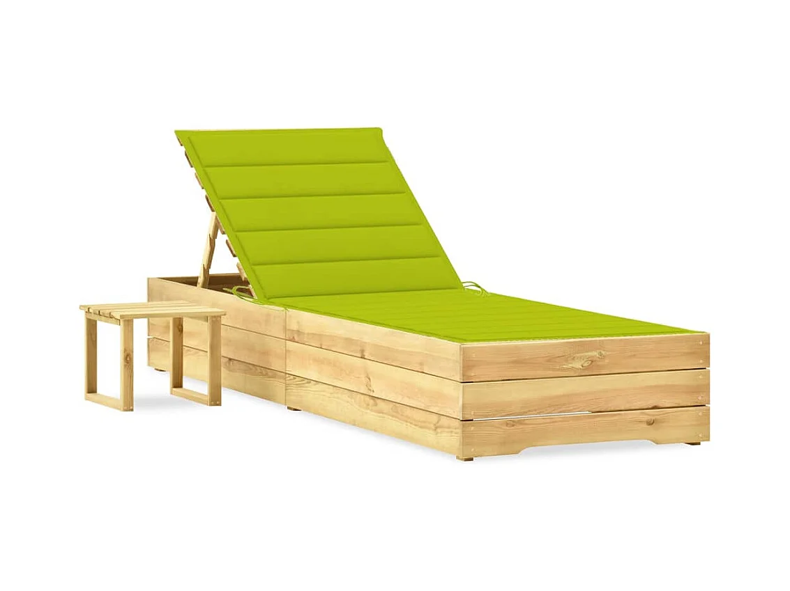 Tumbona cama de jardín terraza mobiliario exterior 198 cm con mesa y cojín pino impregnado 02_0012665