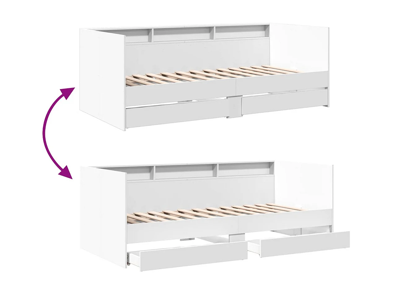Tumbona con cajones madera de ingeniería blanco 90x190 cm