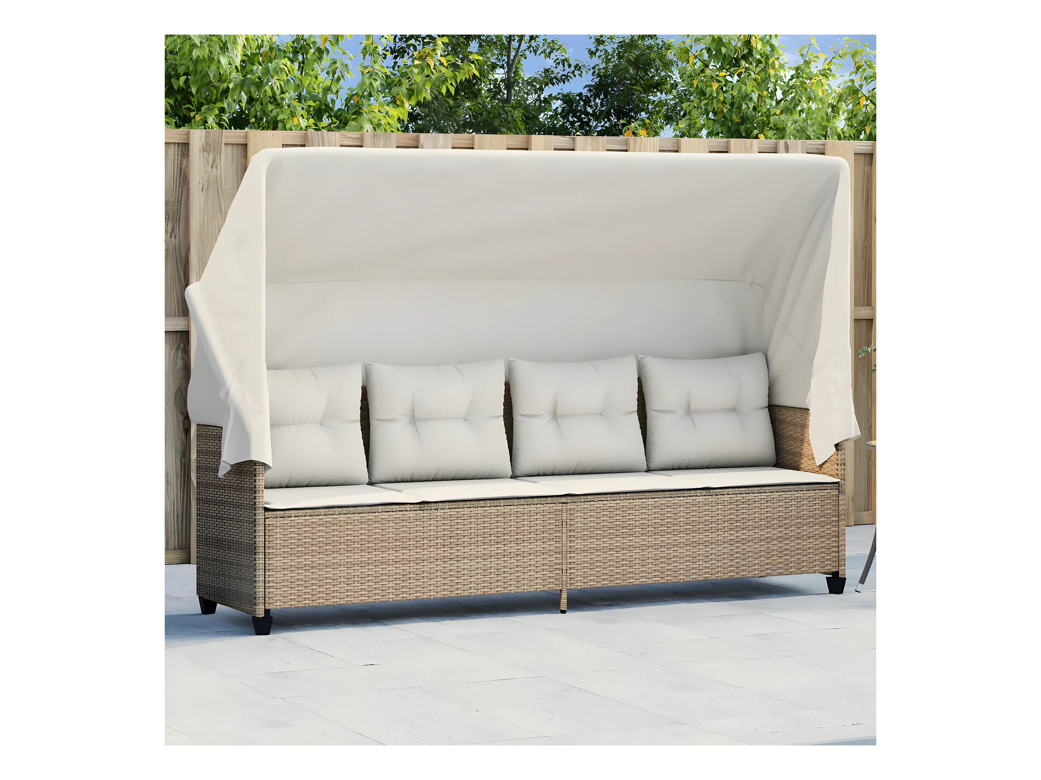 Tumbona con capota y cojines ratán sintético beige ES301240
