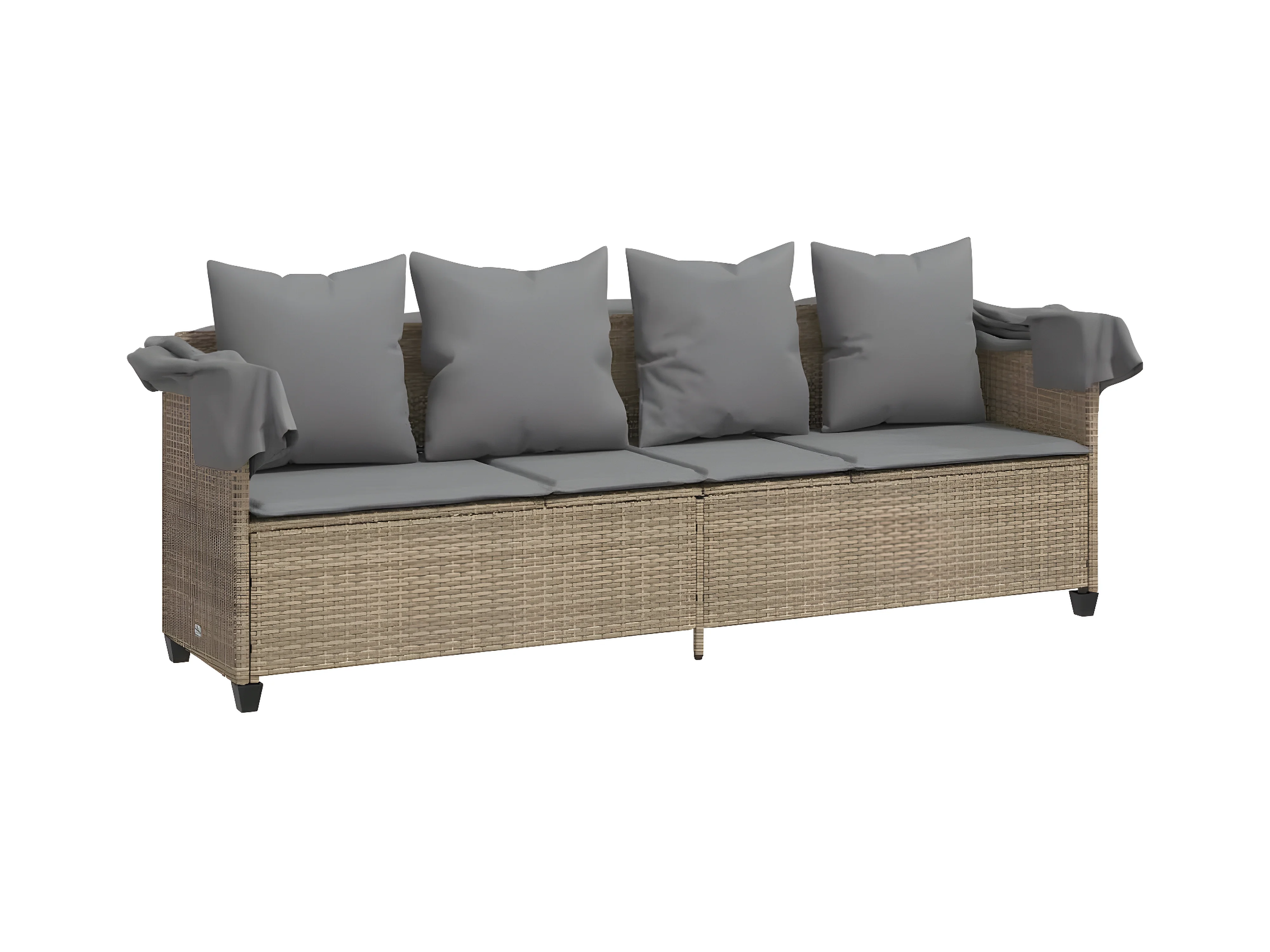 Tumbona con capota y cojines ratán sintético beige ES118625
