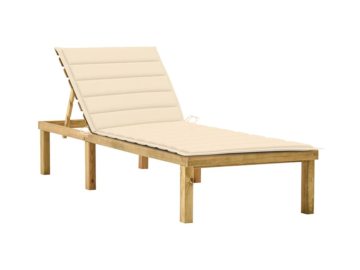 Tumbona con cojín crema madera de pino impregnada ES87993