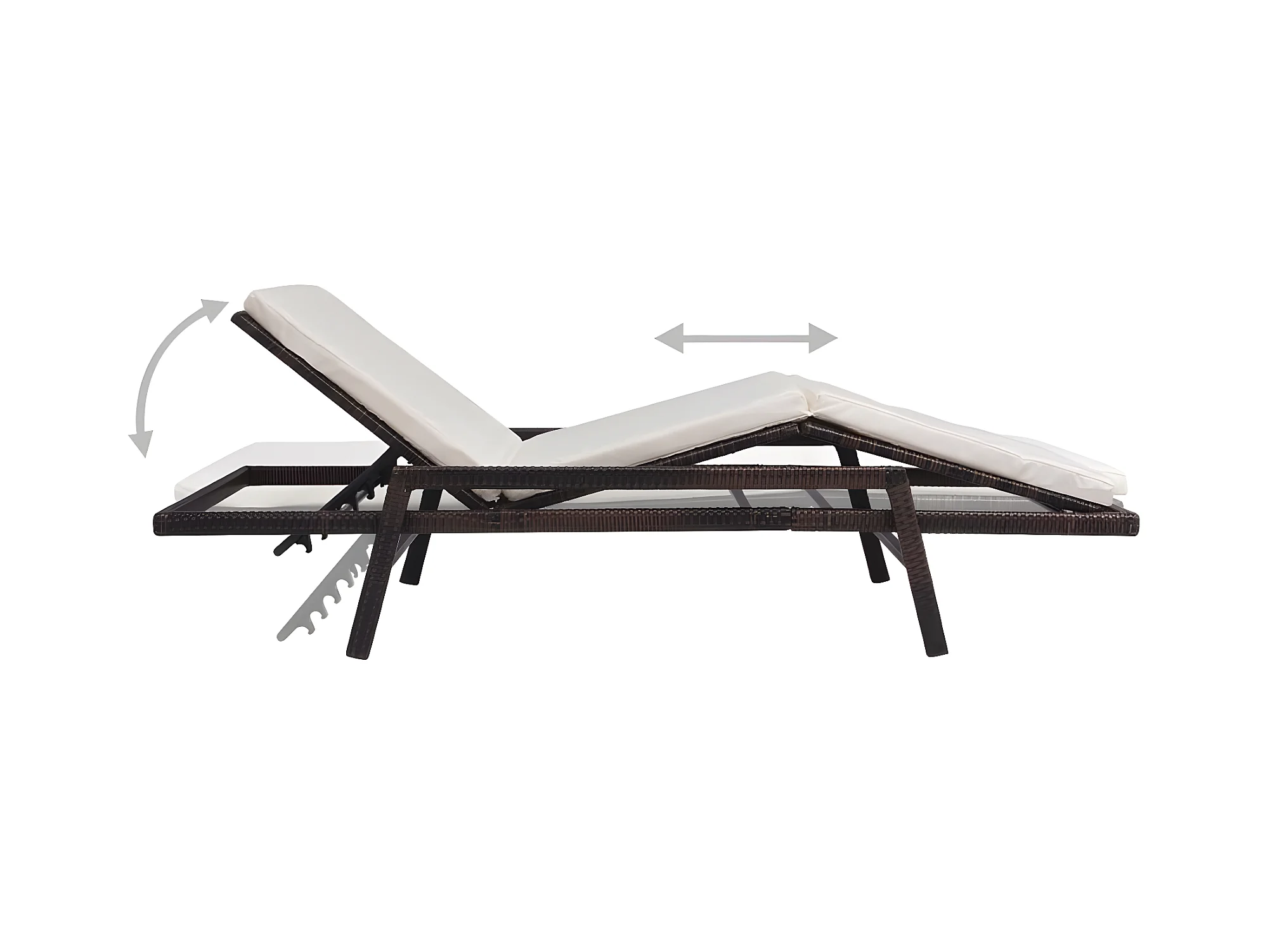 Tumbona con cojín ratán sintético marrón 60x199x42 cm
