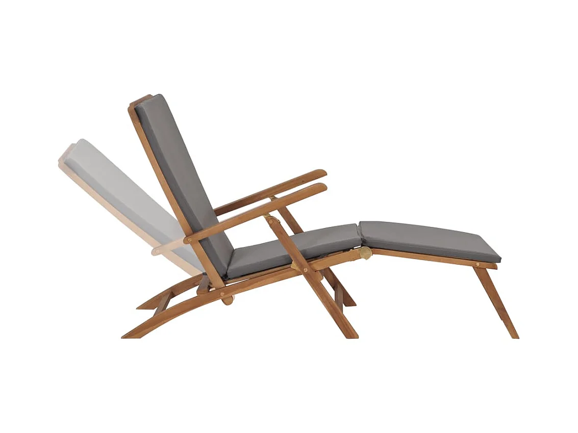 Tumbona con cojín gris oscuro madera maciza de teca ES44564