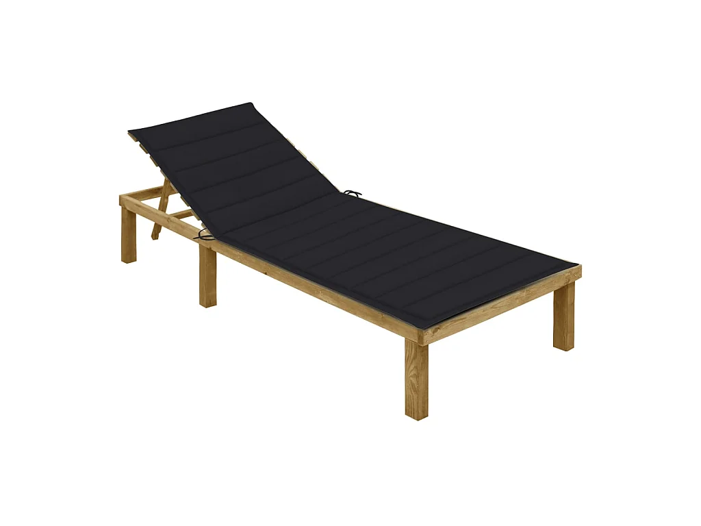 Tumbona con cojín negro madera de pino impregnada ES29473