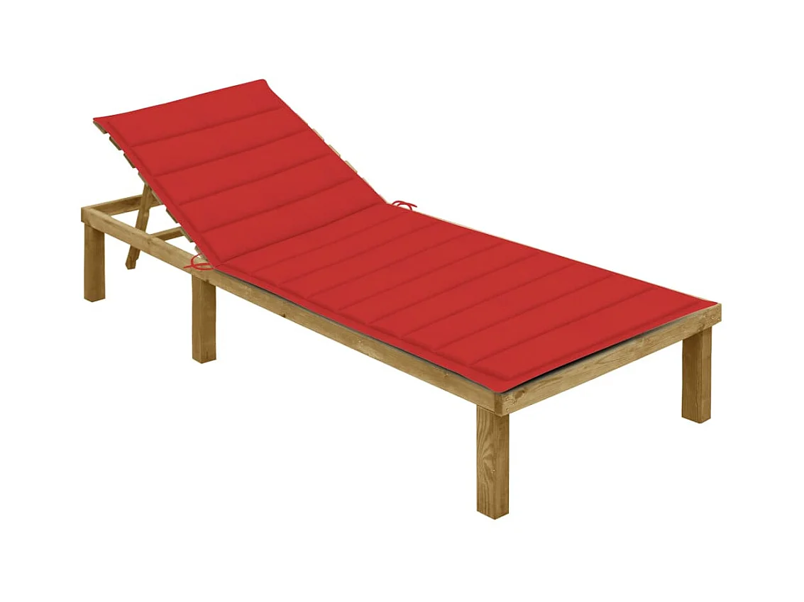 Tumbona con cojín rojo madera de pino impregnada ES29358