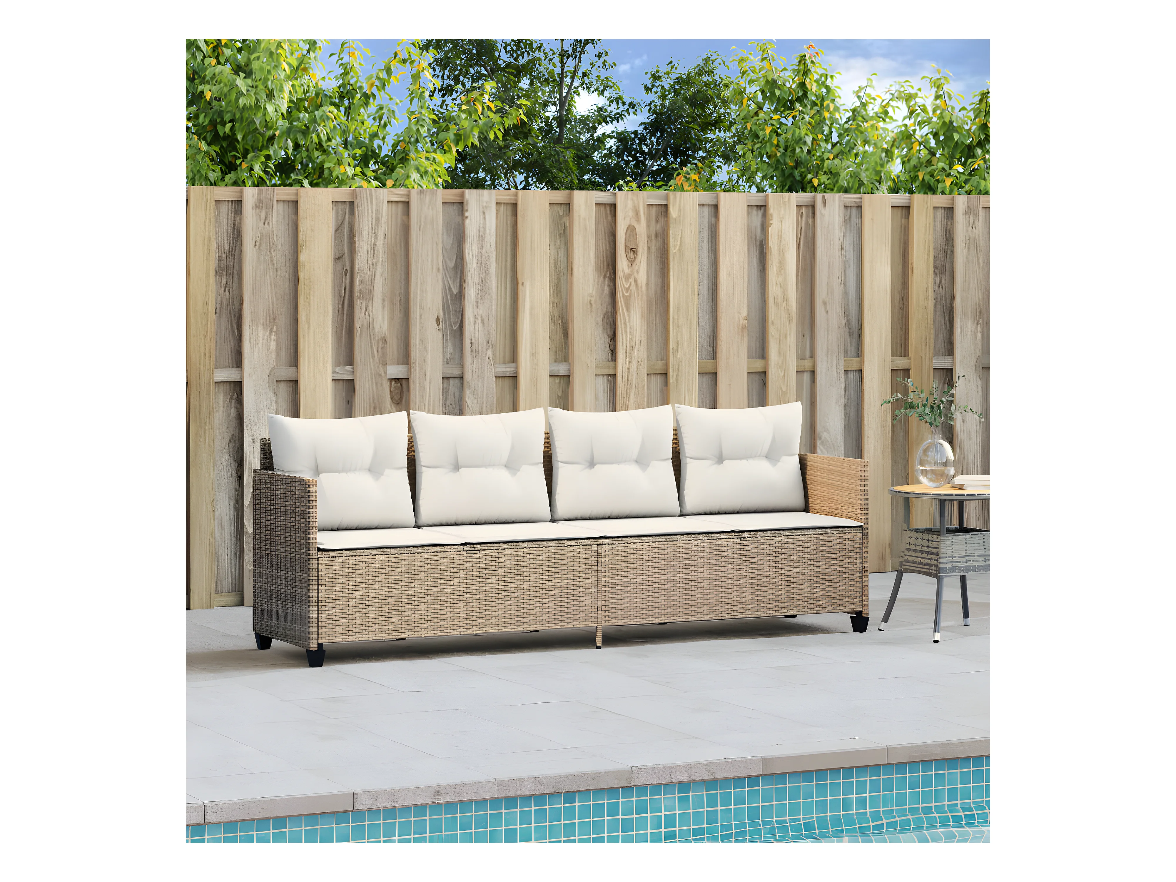 Tumbona con cojín y mesita ratán sintético beige ES431599