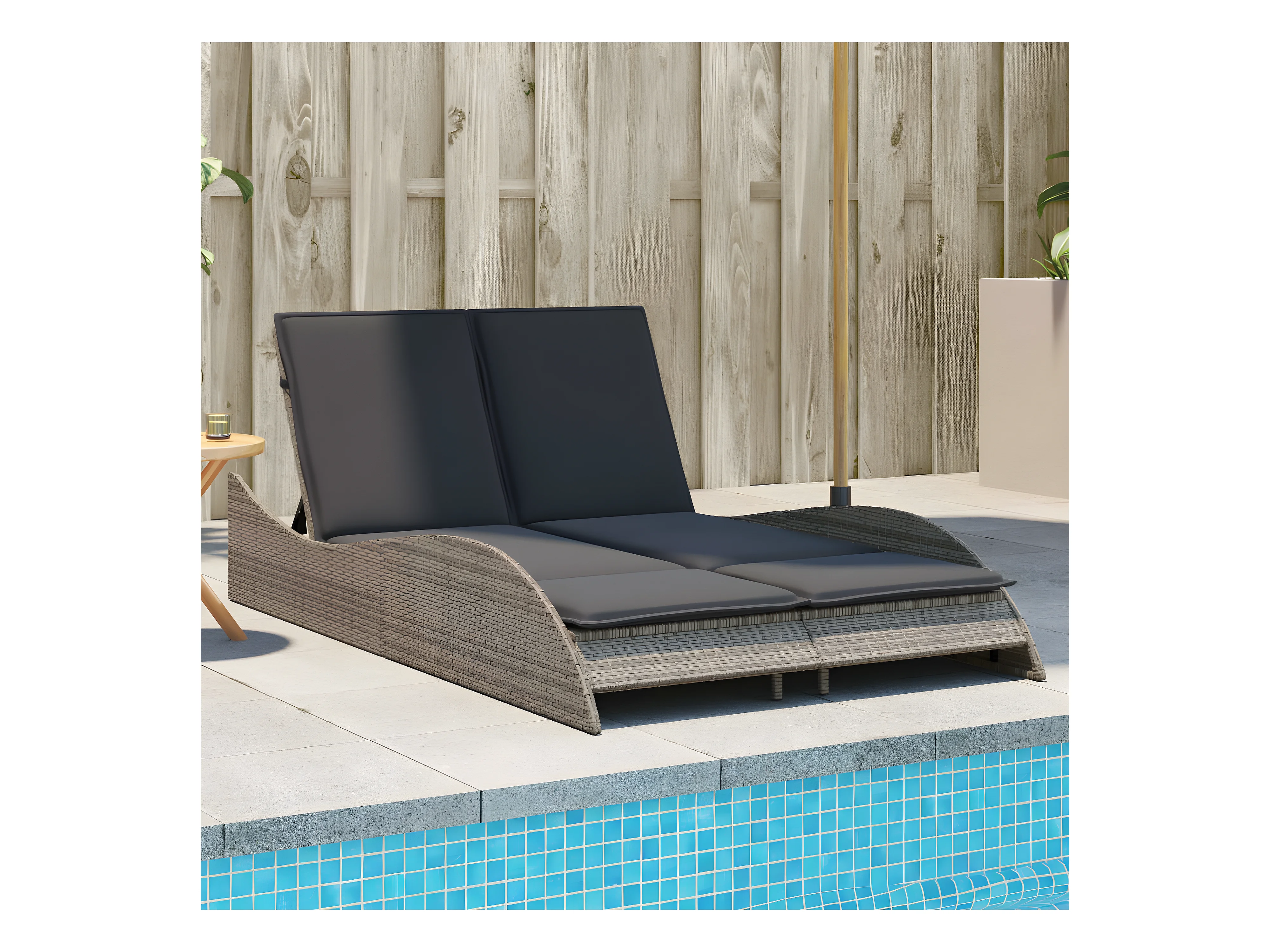 Tumbona doble con cojines ratán sintético gris claro ES347787