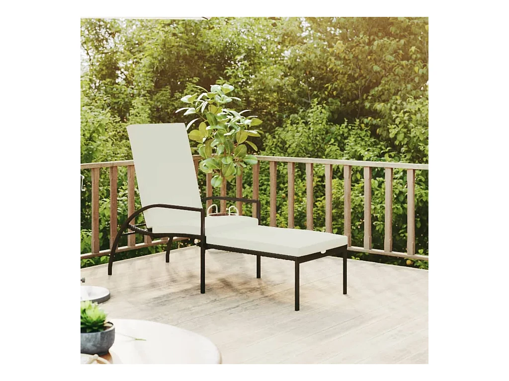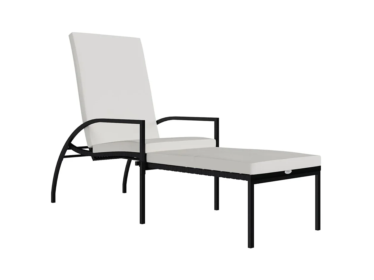 Tumbona de jardín con cojín de ratán sintético negro ES36534