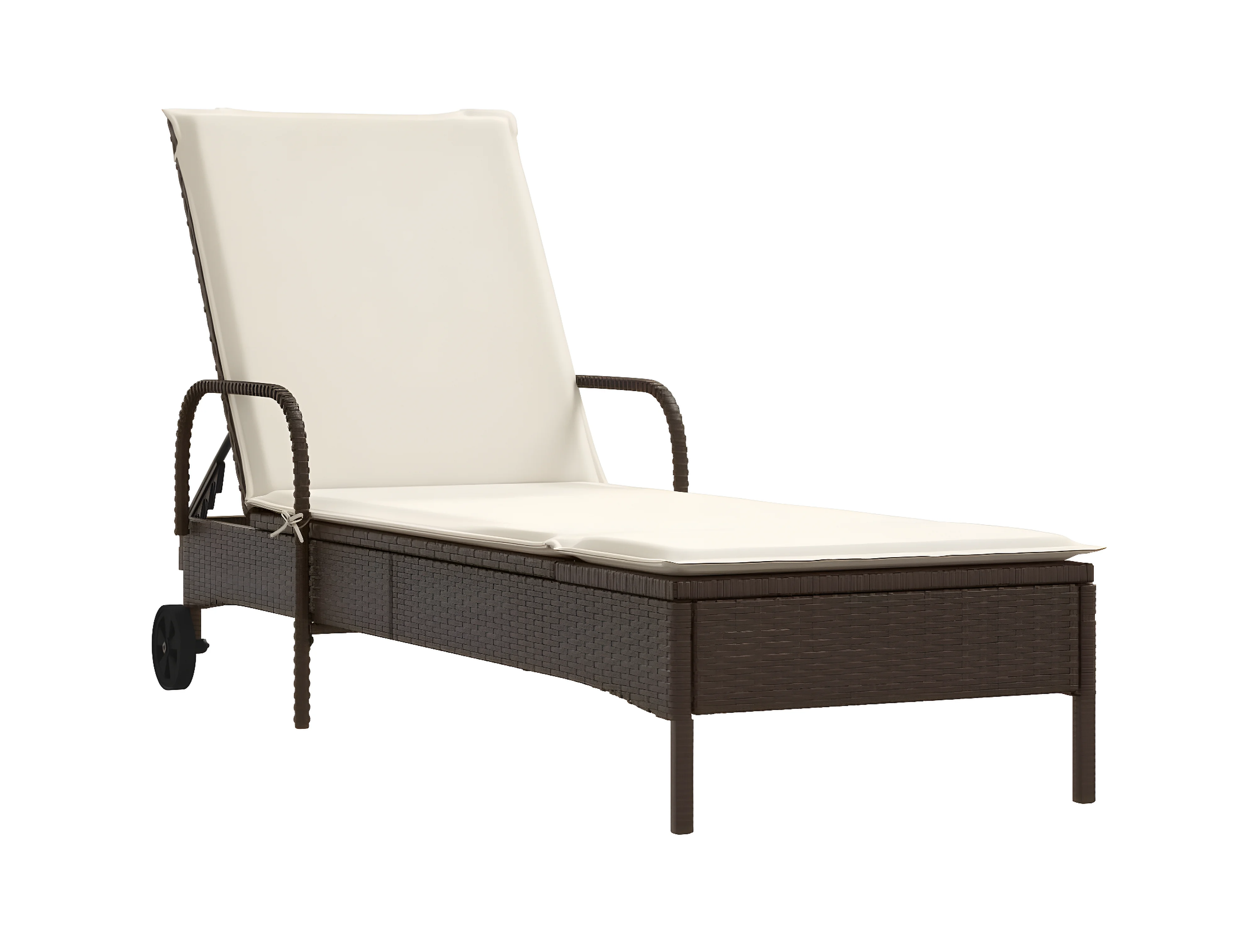 Tumbona con ruedas y cojín ratán sintético marrón ES257575