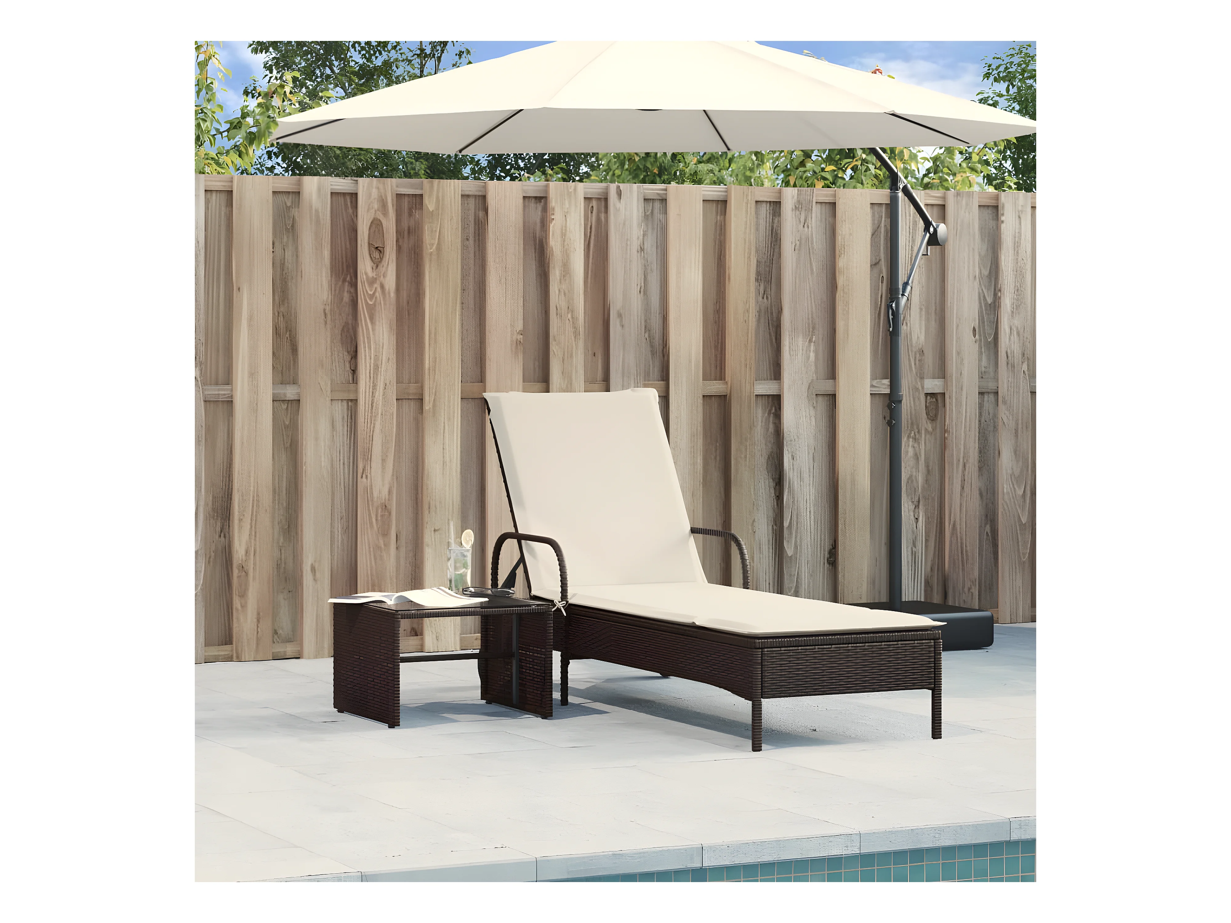 Tumbona con cojín y mesita ratán sintético marrón ES889249
