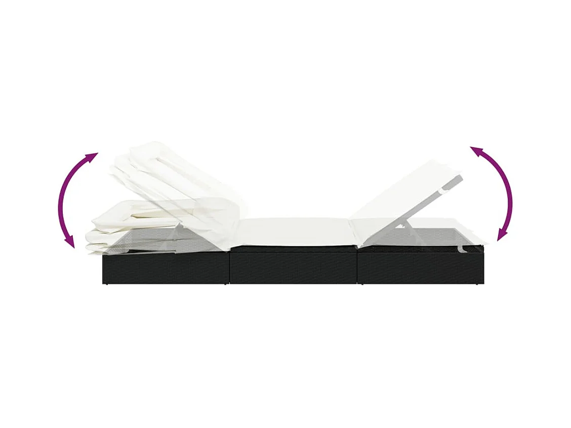 Tumbona con techo plegable negro 213x63x97 cm resina tejida