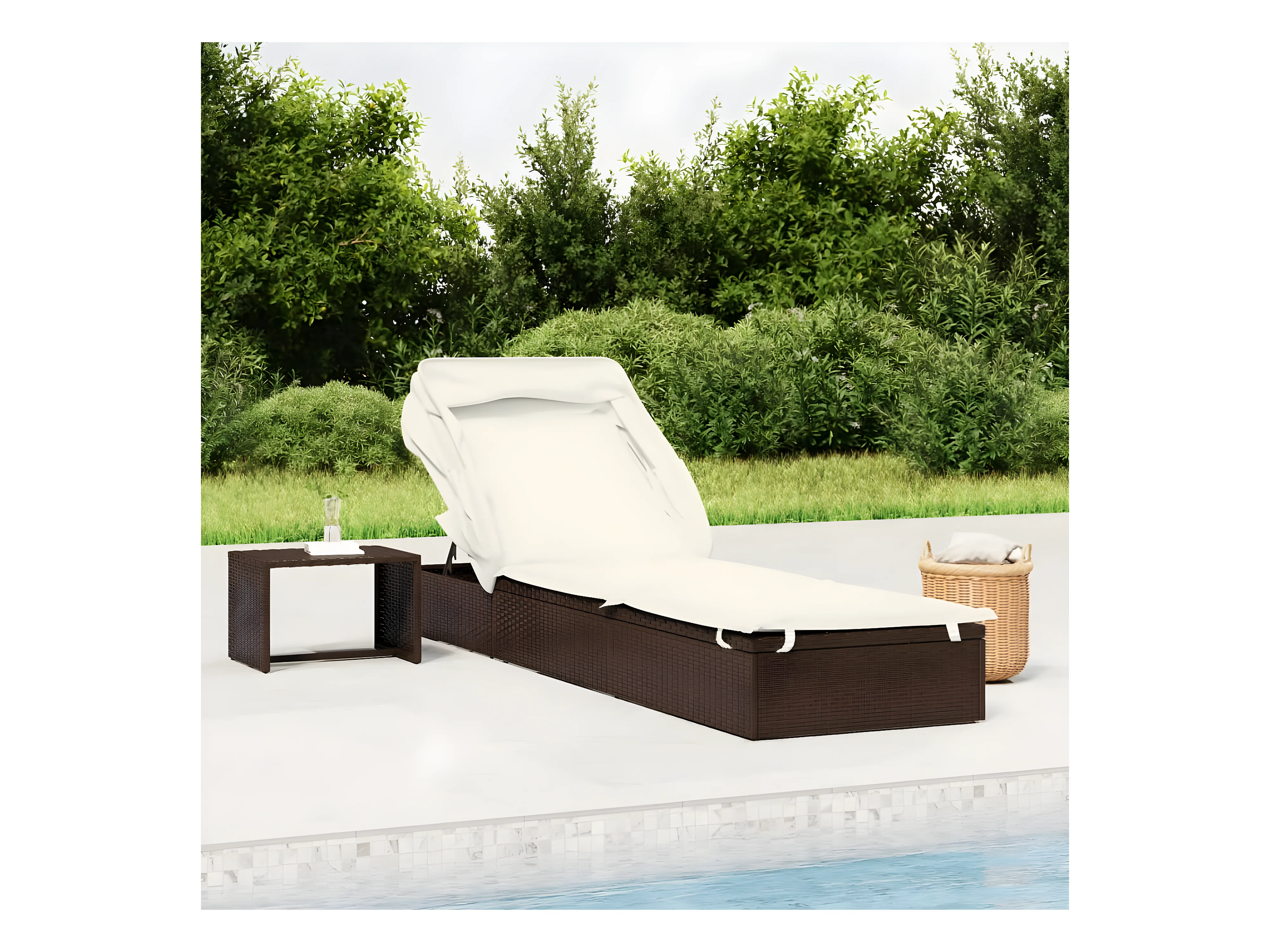 Tumbona con cojín y mesita ratán sintético marrón ES889249