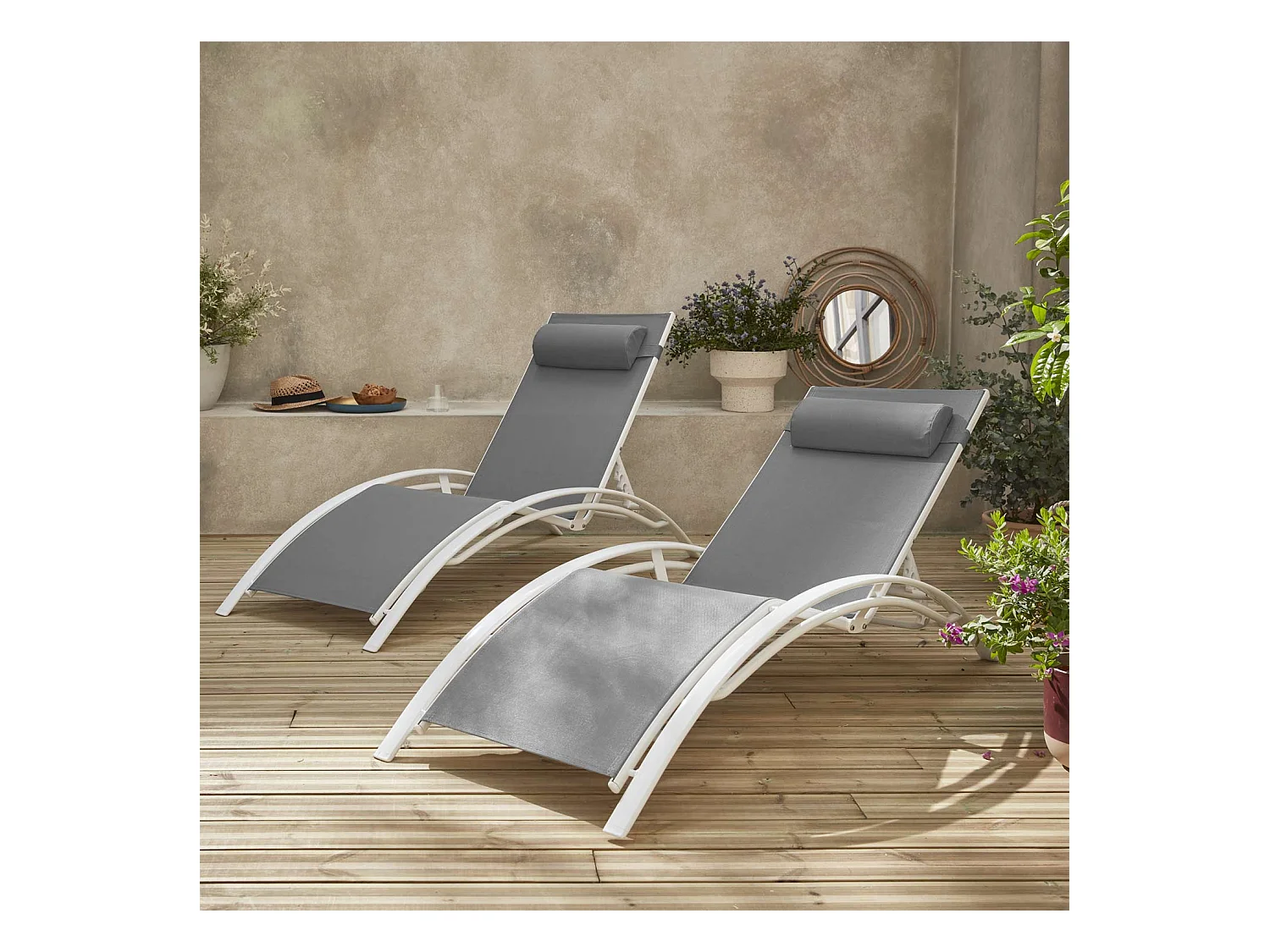 Set de 2 tumbonas blanco y madera maciza NAVEEN