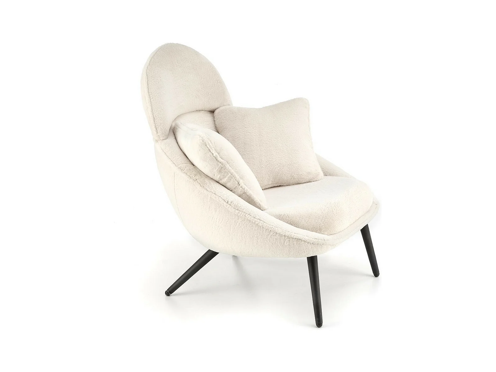 Sillón de diseño en tejido crema con patas de metal negro Baralona