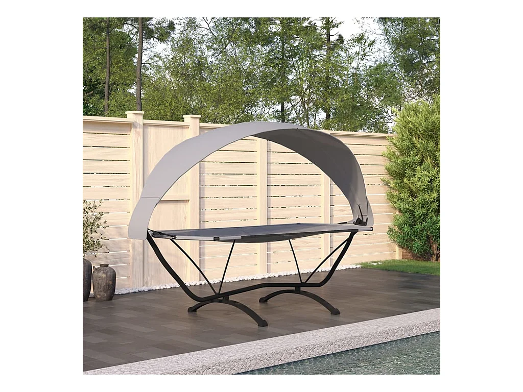 Tumbona de jardín con dosel de acero y tela oxford gris KOW97884