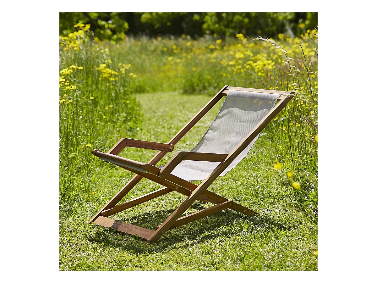 Tumbona de jardín tumbona terraza mobiliario de exterior plegable con cojín madera maciza de acacia 02_0012849