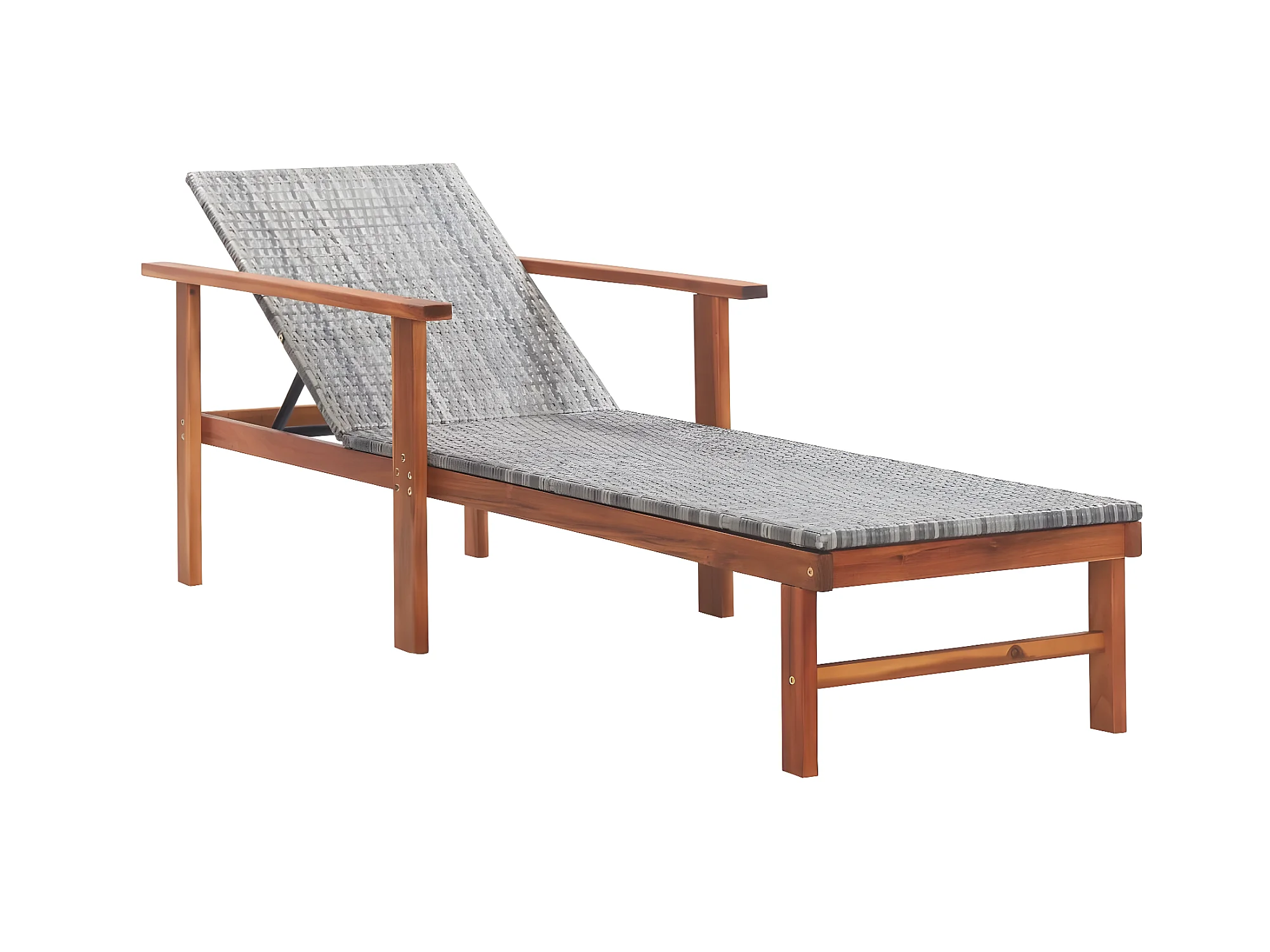 Tumbona de madera maciza de acacia y ratán sintético gris ES43261
