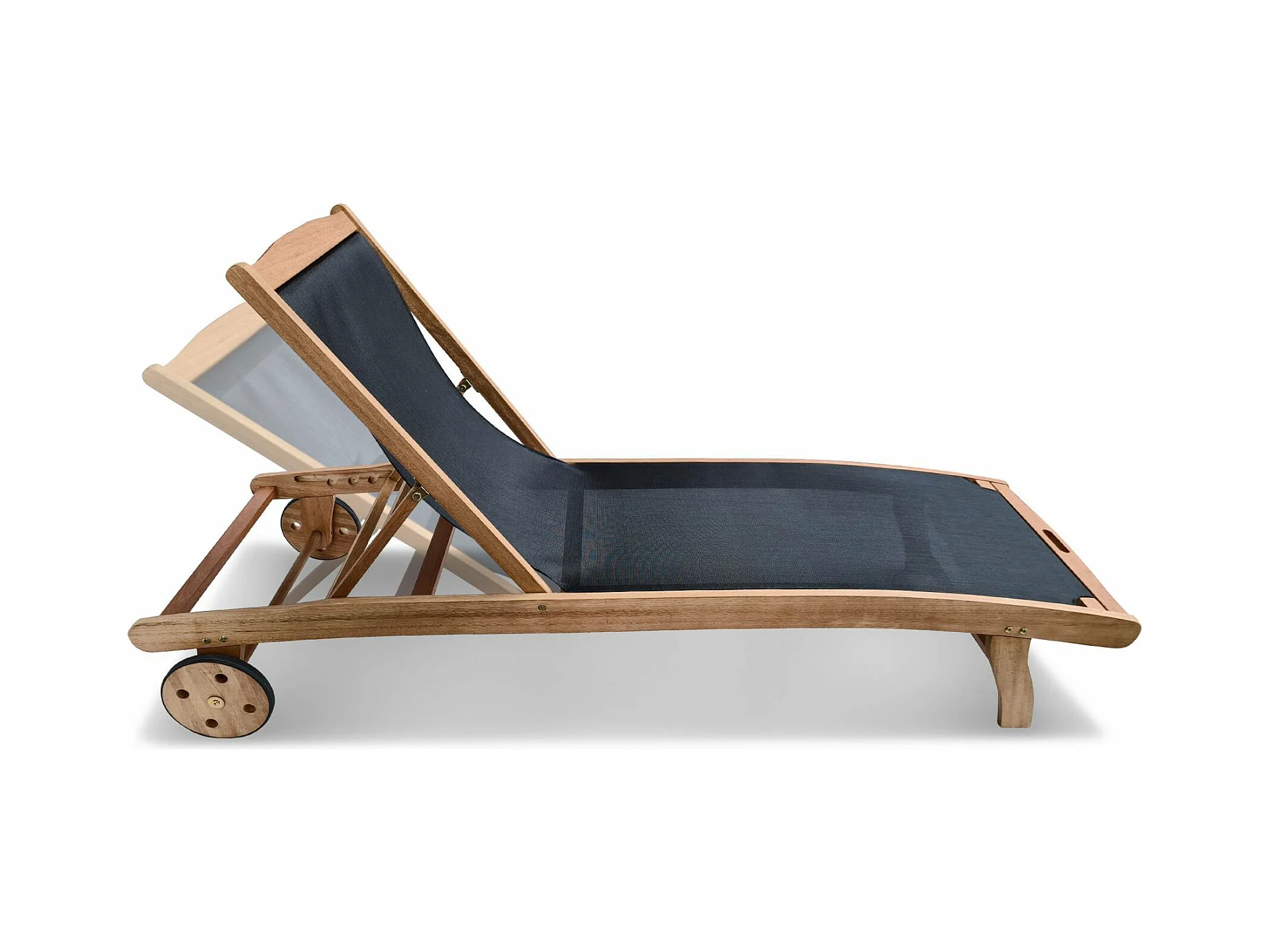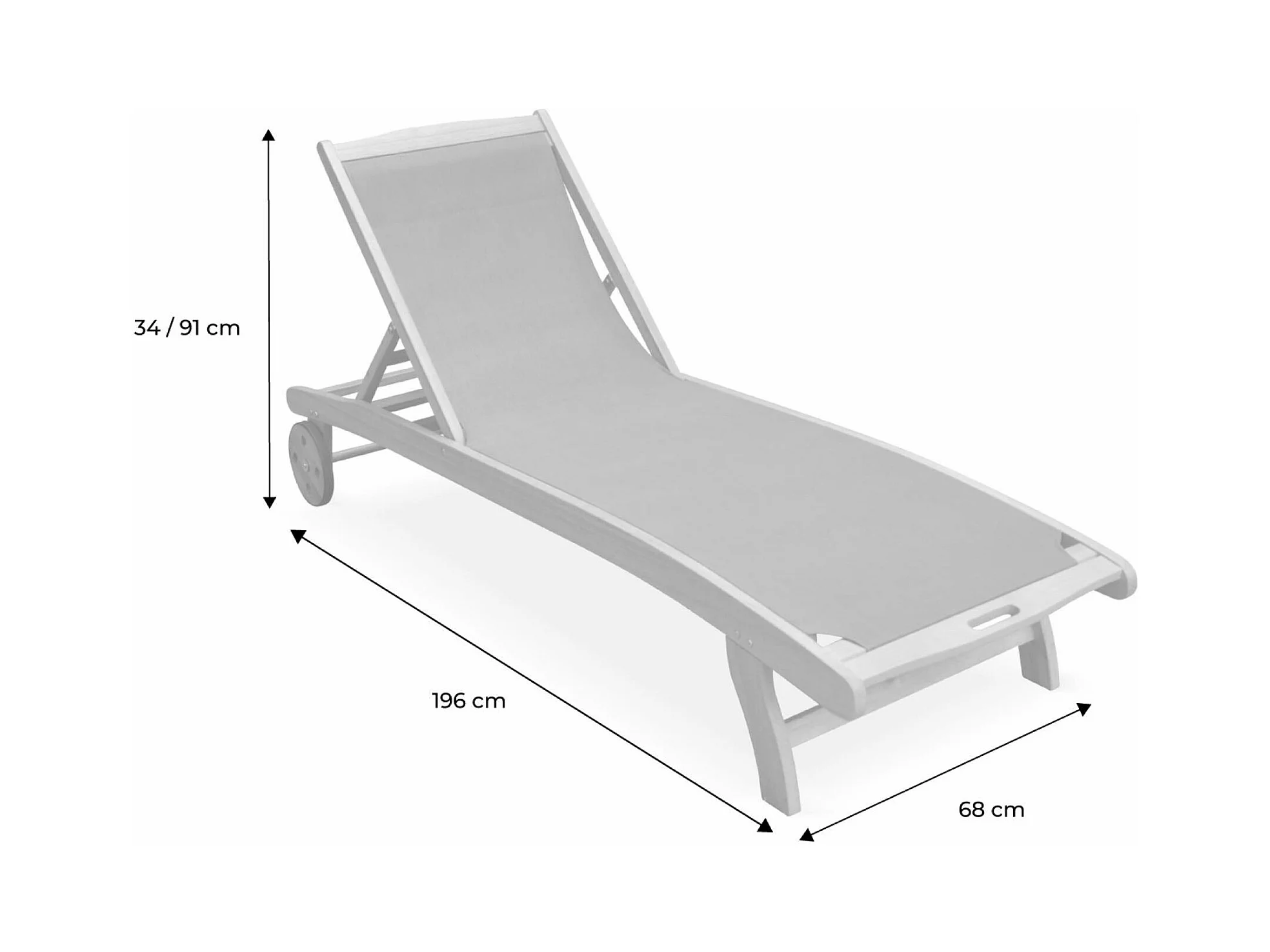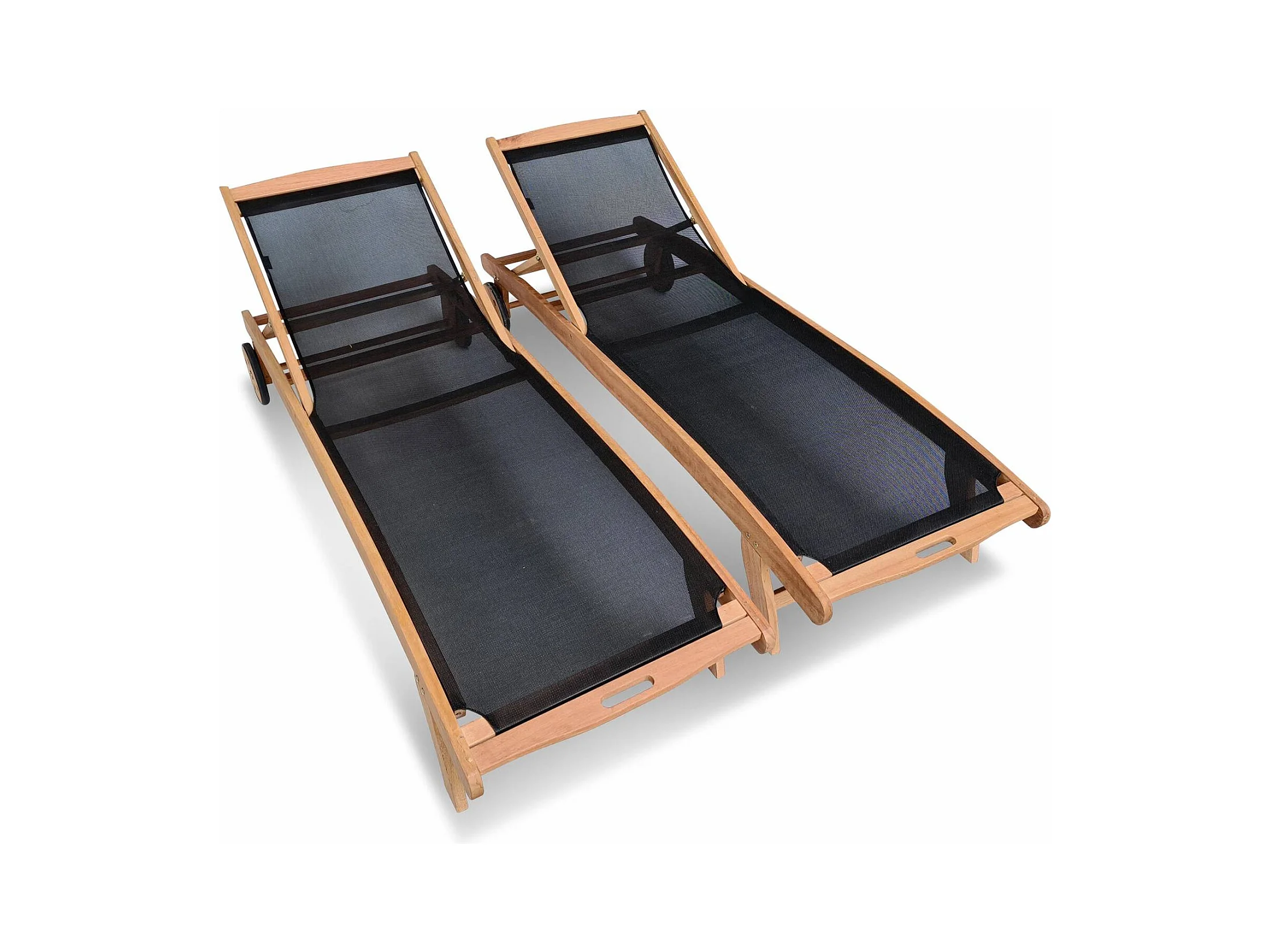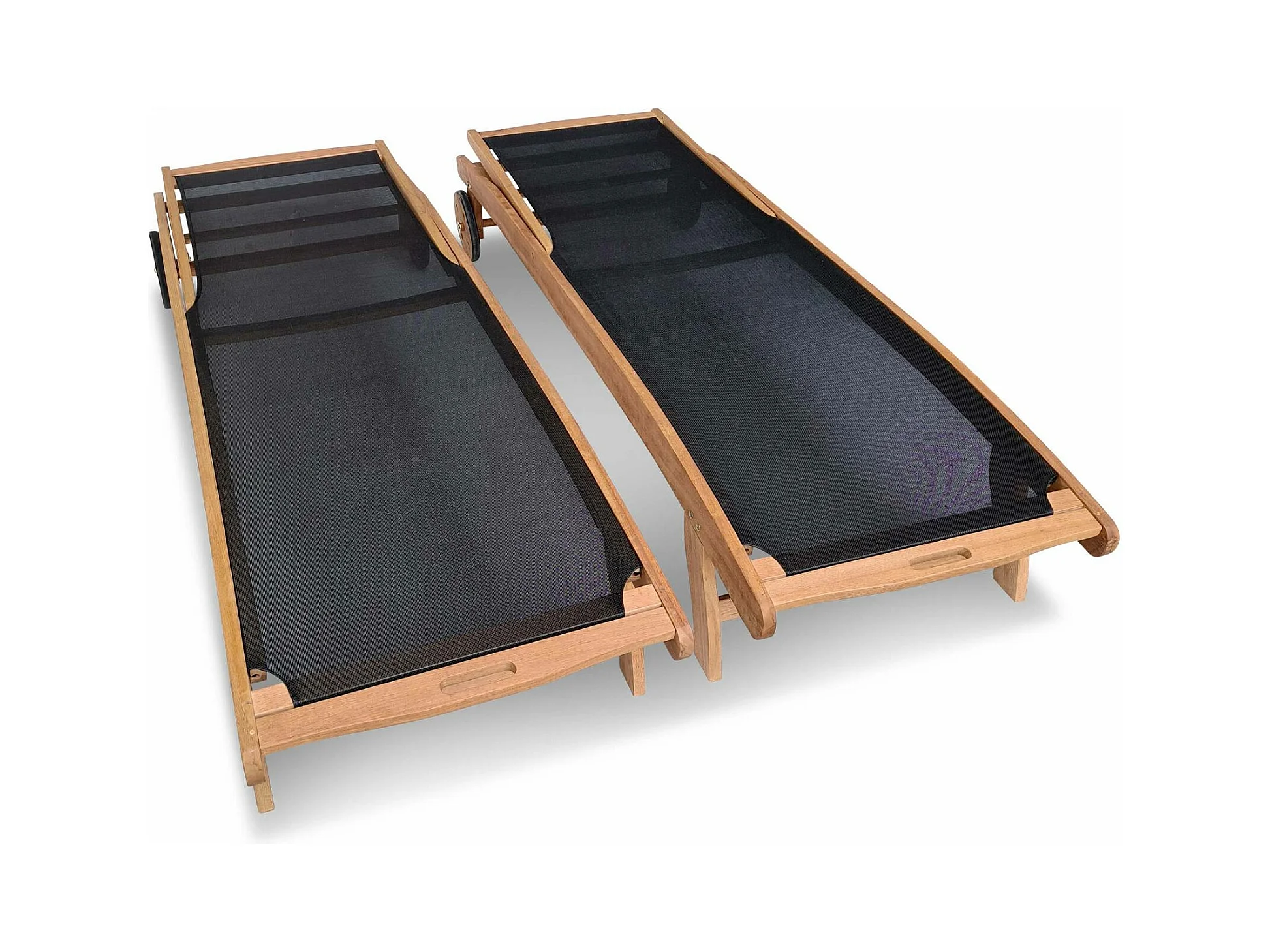 Tumbona de madera multiposición con ruedas, set de 2 negro