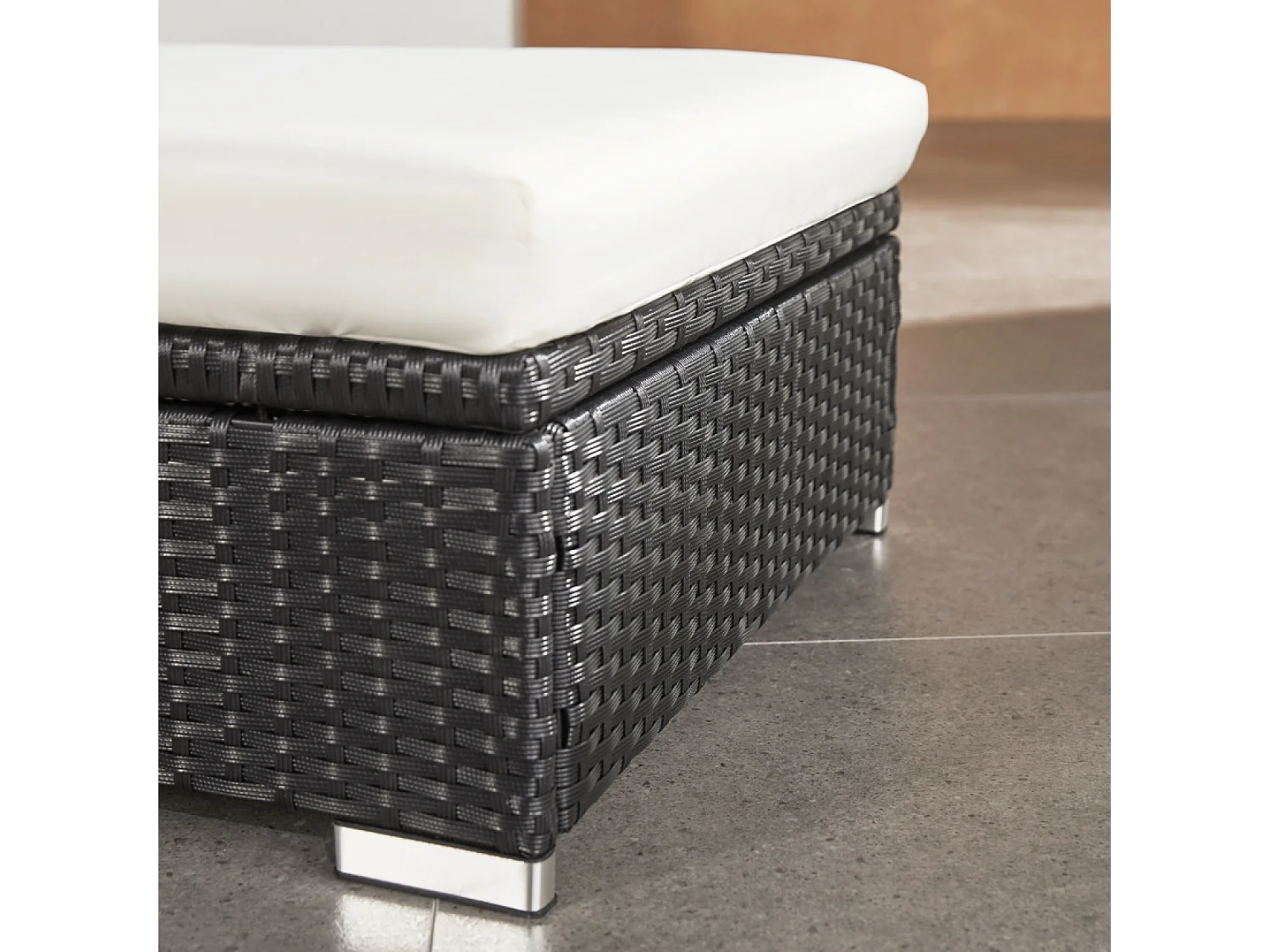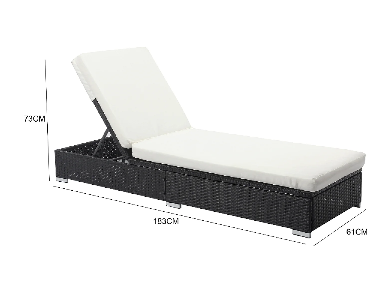 SUNNY : Tumbona de resina tejida negra y colchoneta blanca