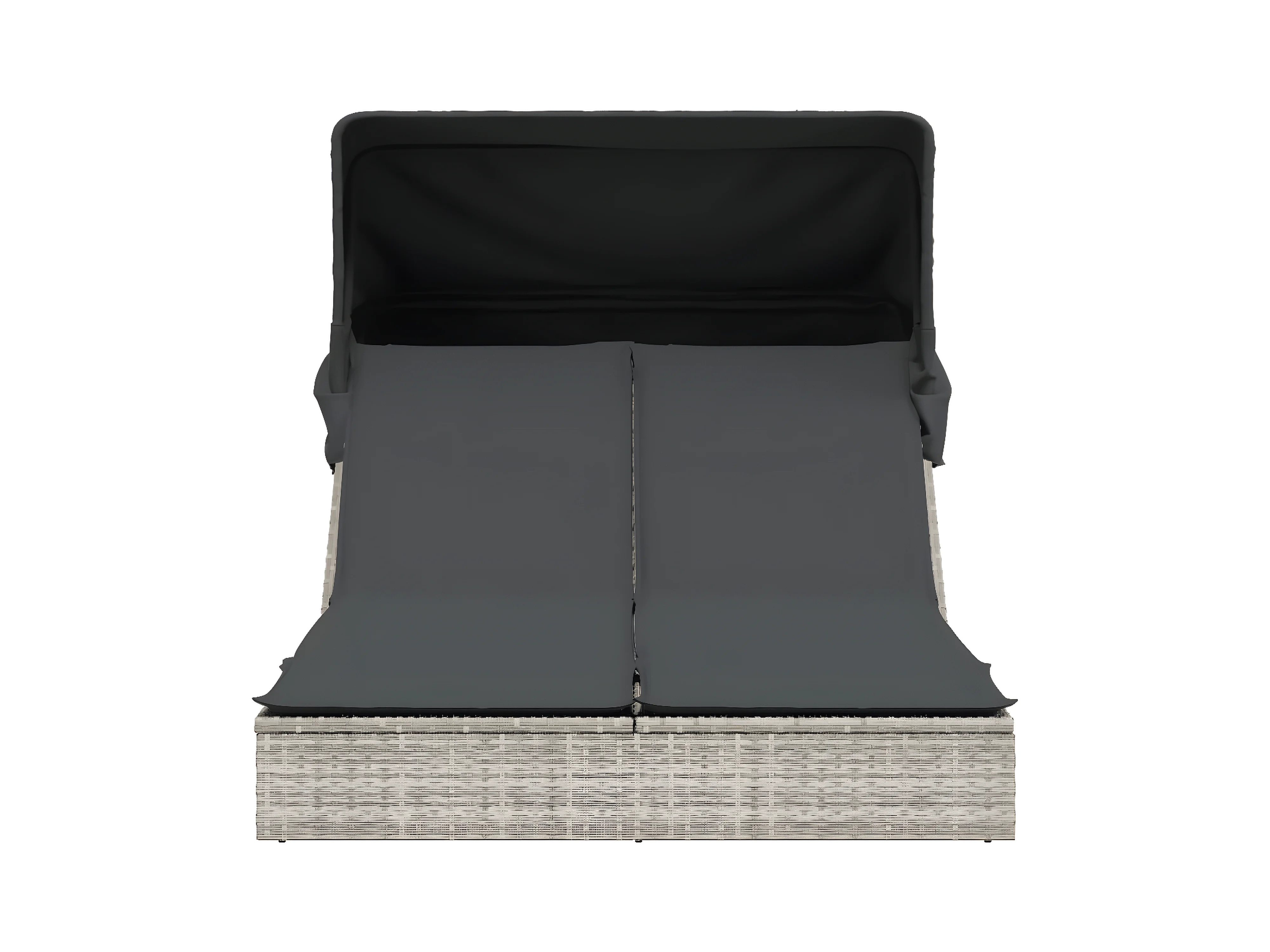 Tumbona doble con capota y cojines ratán sintético gris claro ES268213